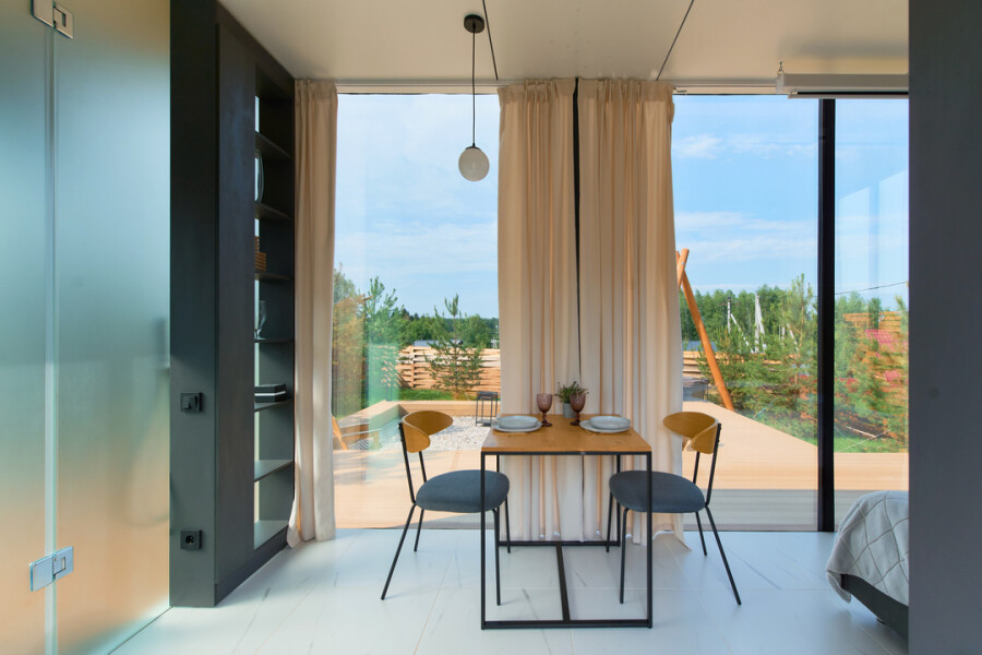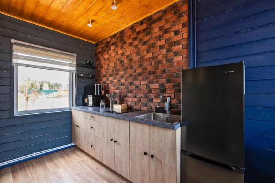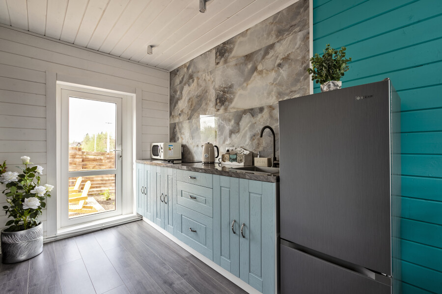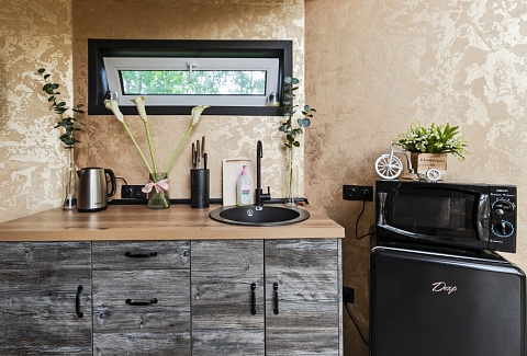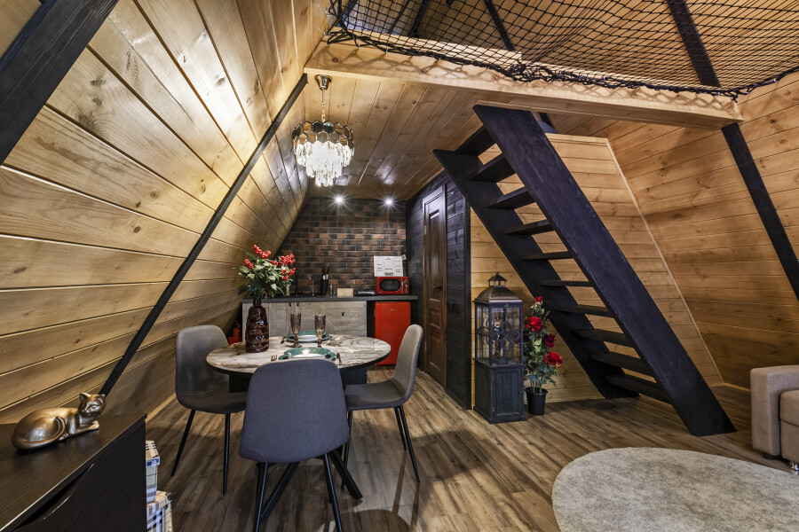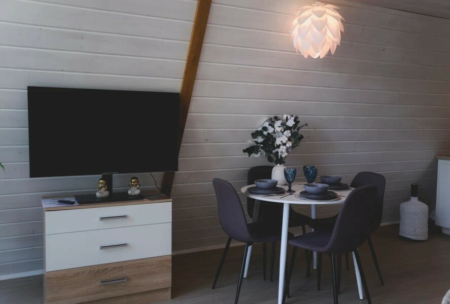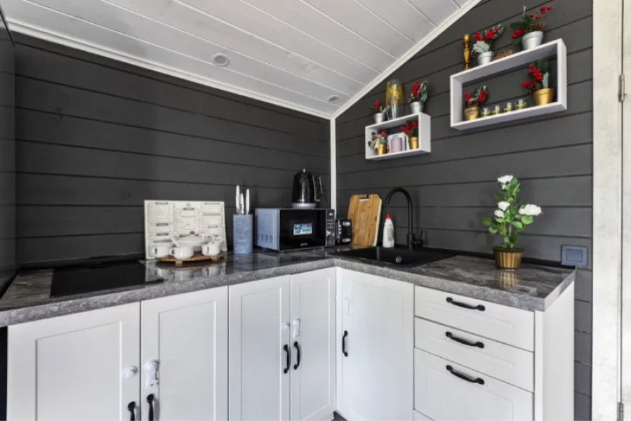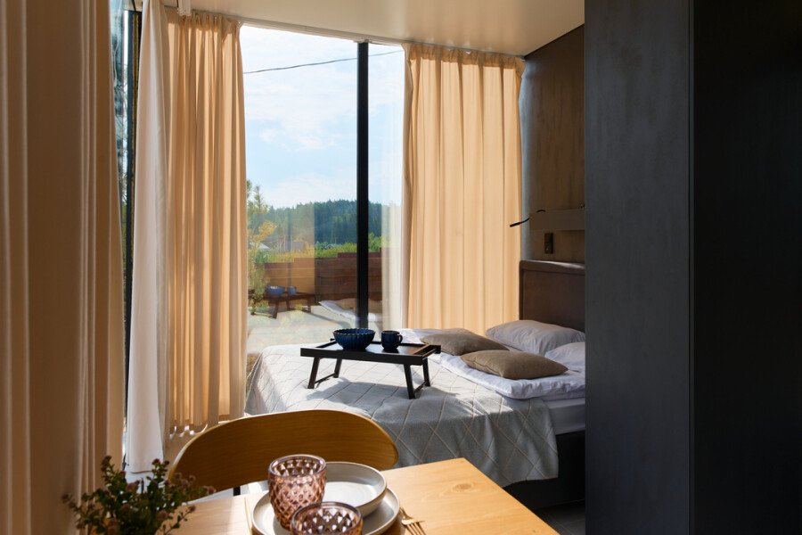 В номере: зеркало, кровать двуспальная, стол, стулья, шкаф, микроволновая печь, мини-холодильник, набор посуды, плита электрическая, телевизор ЖК, чайный набор посуды, электрочайник