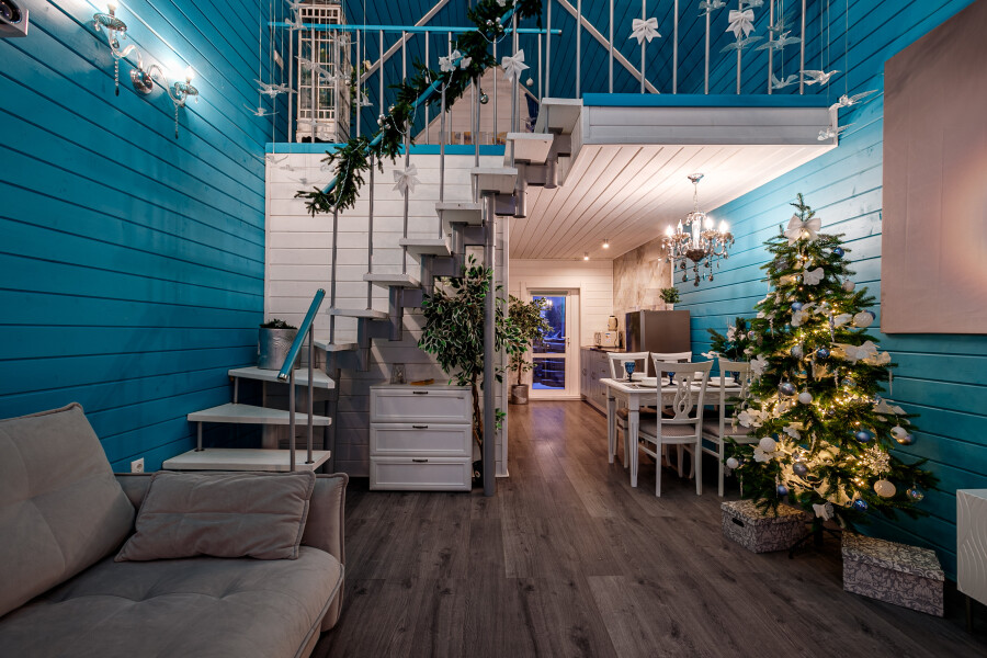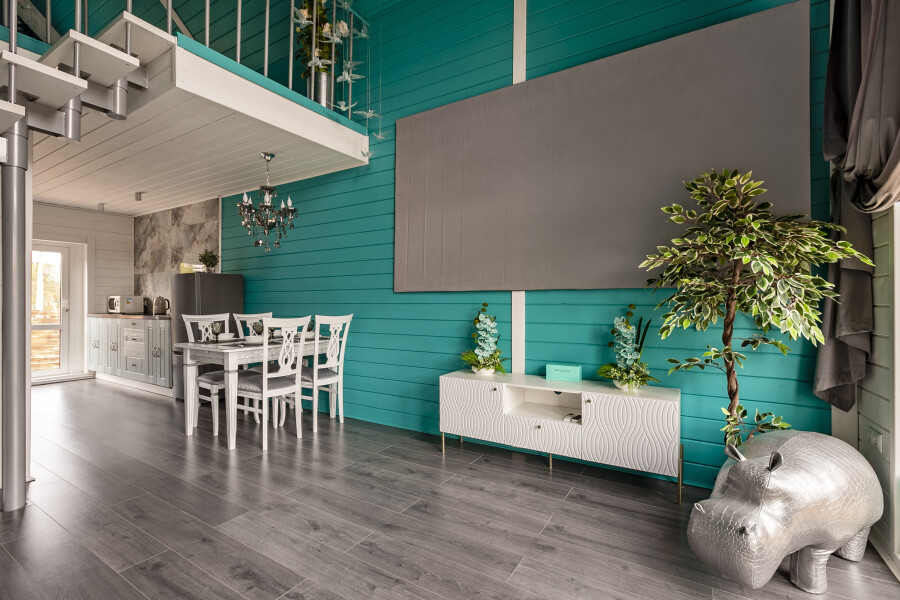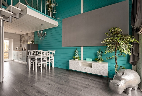В номере: диван, зеркало, кровать двуспальная, стол, стулья, шкаф, кондиционер, микроволновая печь, набор посуды, плита электрическая, телевизор ЖК, холодильник, чайный набор посуды, электрочайник