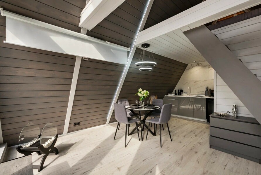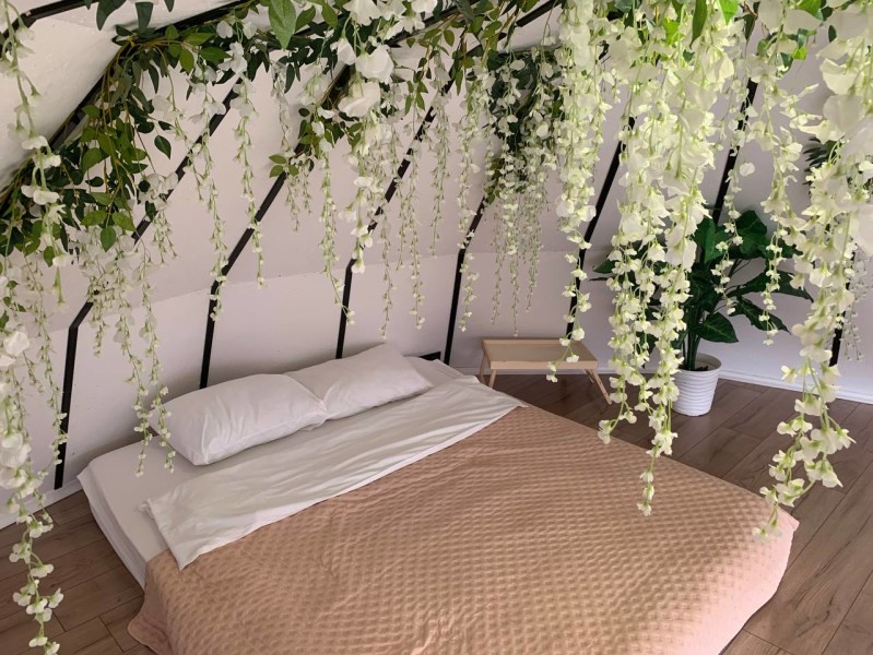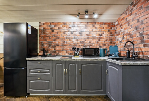 В номере: диван, зеркало, кровать двуспальная, стол, стулья, шкаф, кондиционер, микроволновая печь, плита электрическая, телевизор ЖК, холодильник, чайный набор посуды, электрочайник