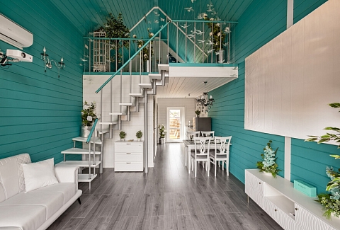 В номере: диван, зеркало, кровать двуспальная, стол, стулья, шкаф, кондиционер, микроволновая печь, мини-холодильник, набор посуды, плита электрическая, телевизор ЖК, чайный набор посуды, электрочайник