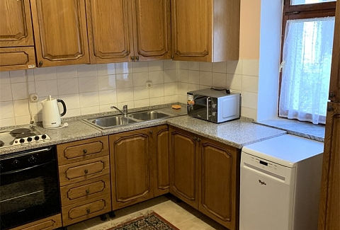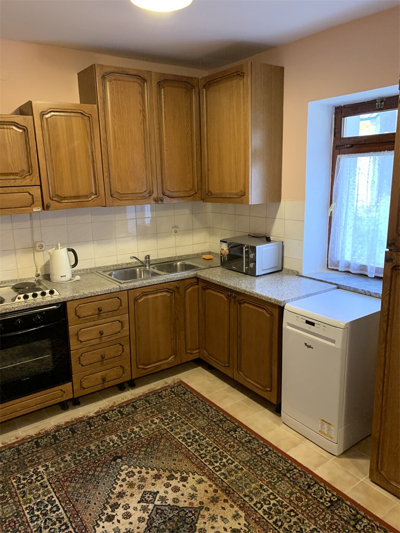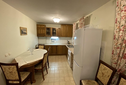 В номере: вешалка, диван, зеркало, кресла, кровать двуспальная, кухонная мебель, прикроватные тумбочки, столик журнальный, стол обеденный, стулья, шкаф, микроволновая печь, набор посуды, плита электрическая, стиральная машина, телевизор, холодильник, чайный набор посуды, электрочайник