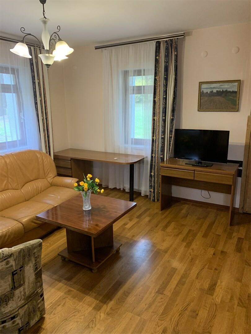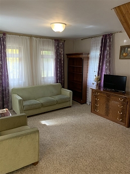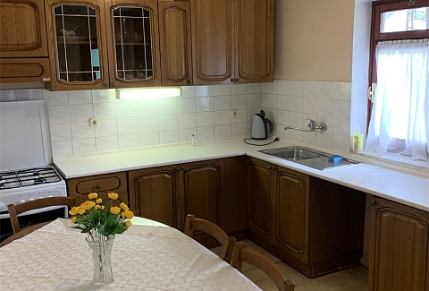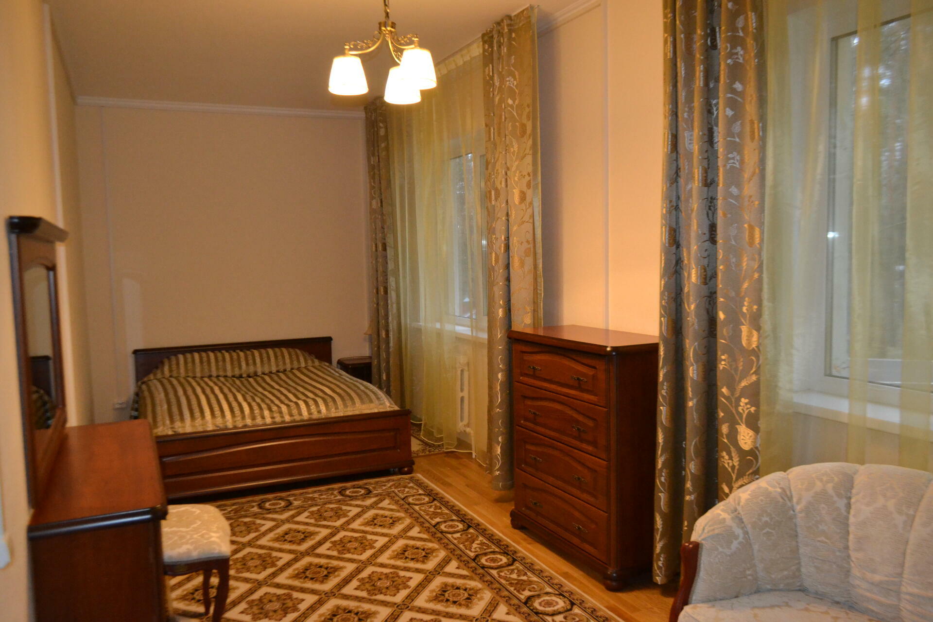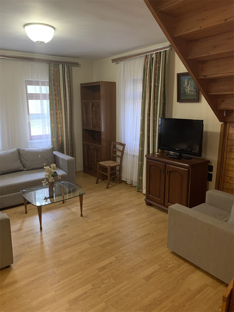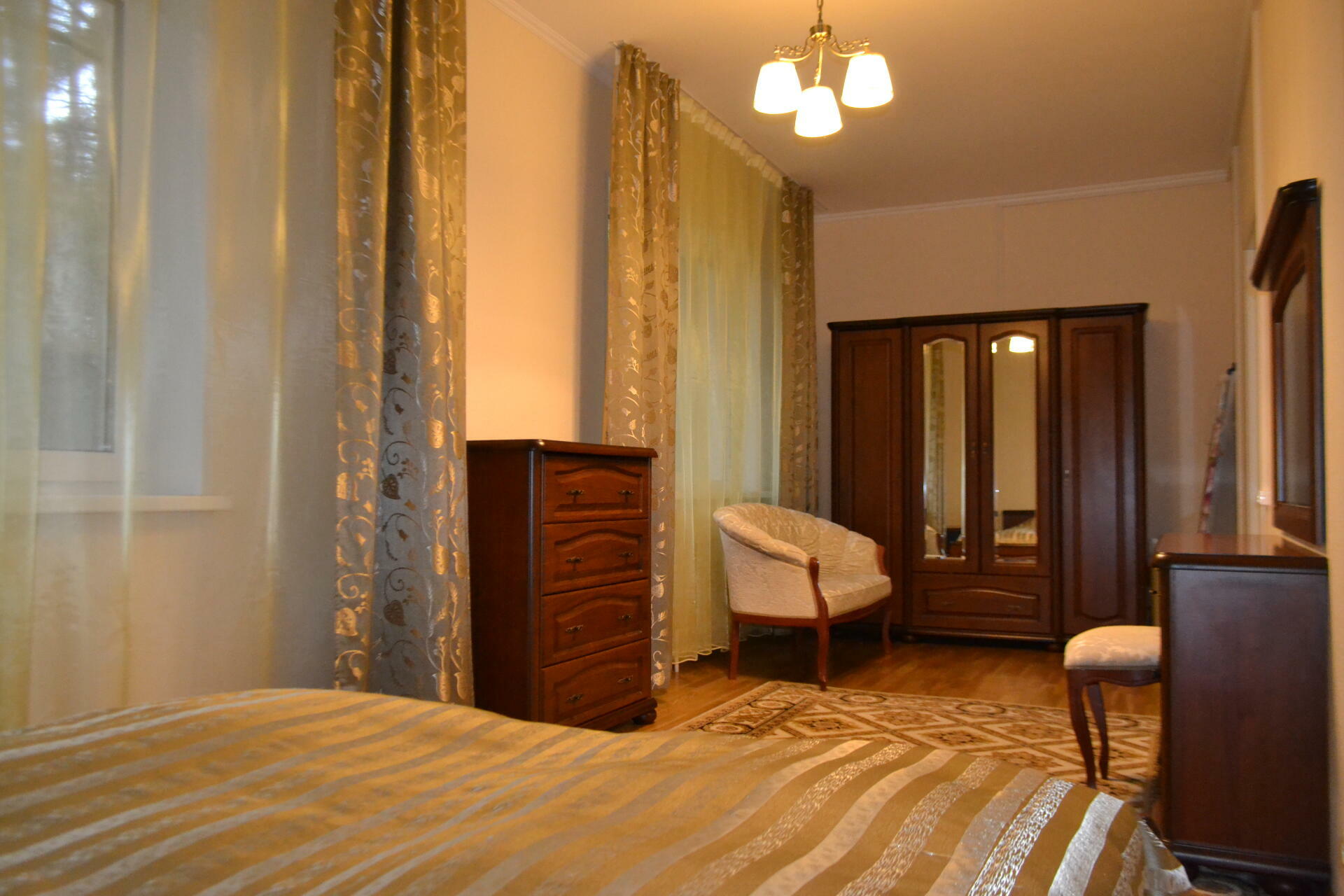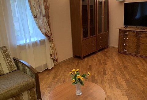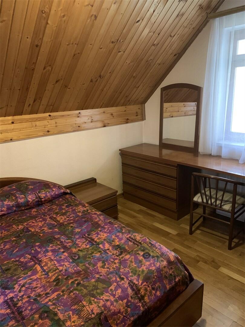 В номере: вешалка, диван, зеркало, кресло, кровать двуспальная, кровать односпальная, кухонная мебель, прикроватные тумбочки, стол, стол обеденный, стулья, шкаф, набор посуды, плита газовая, телевизор, телефон, холодильник