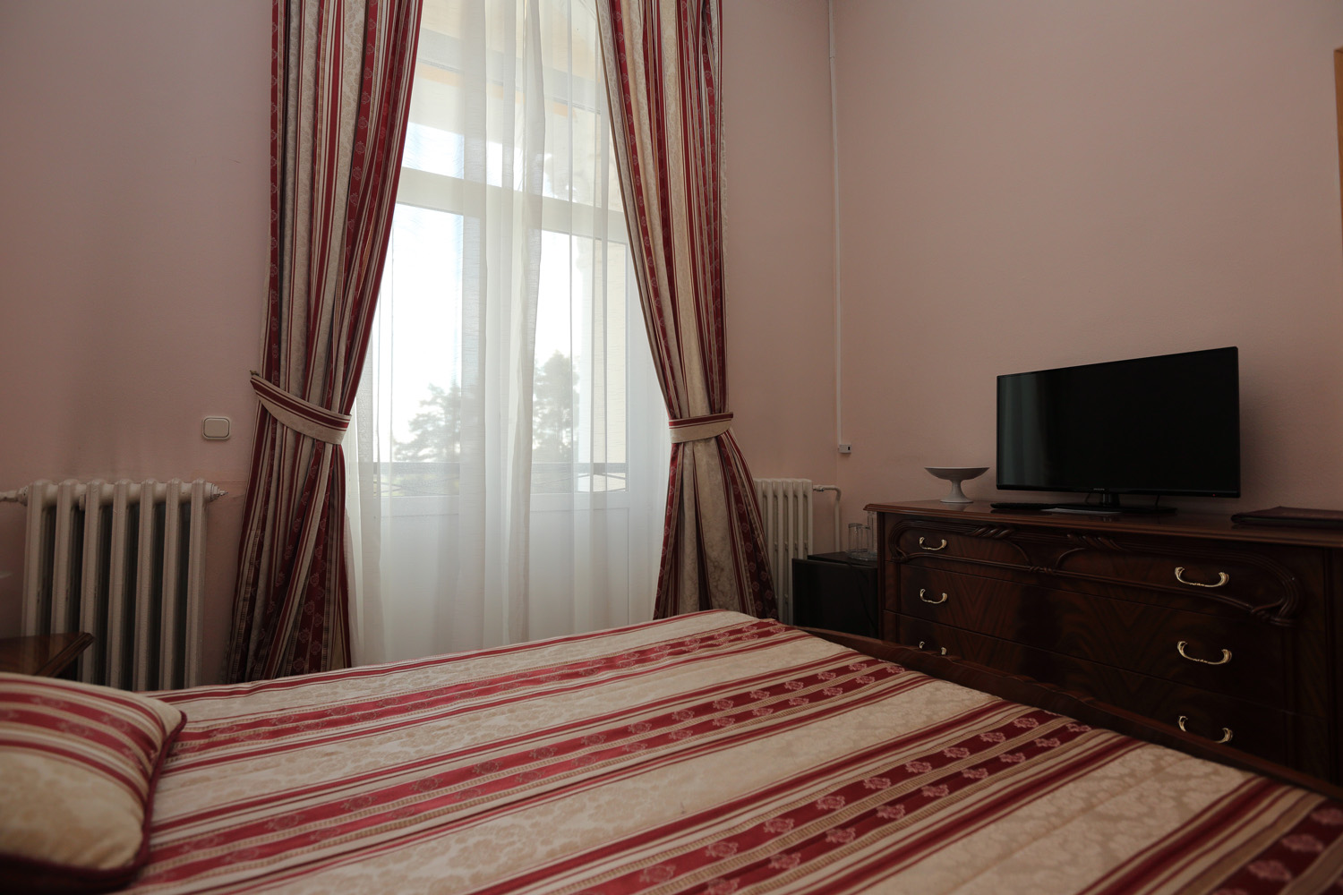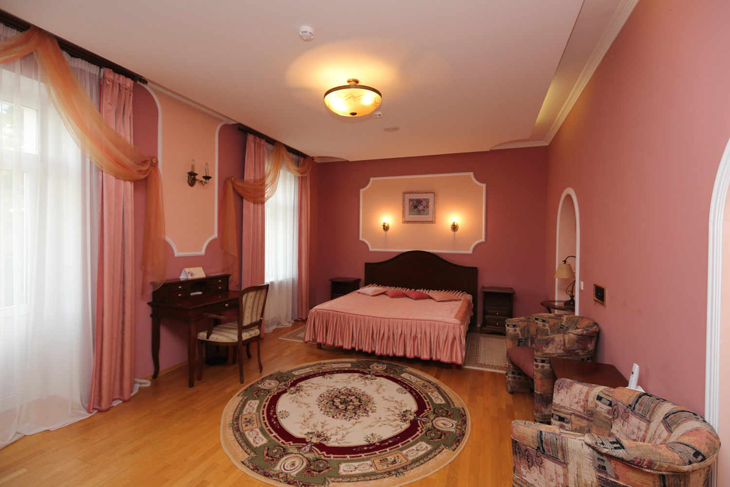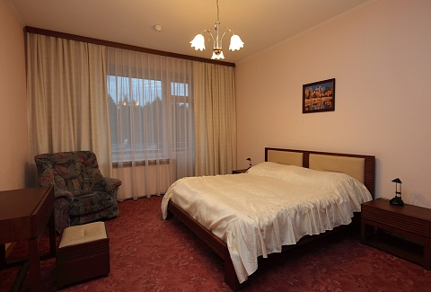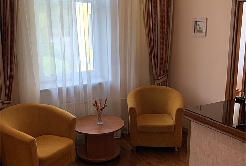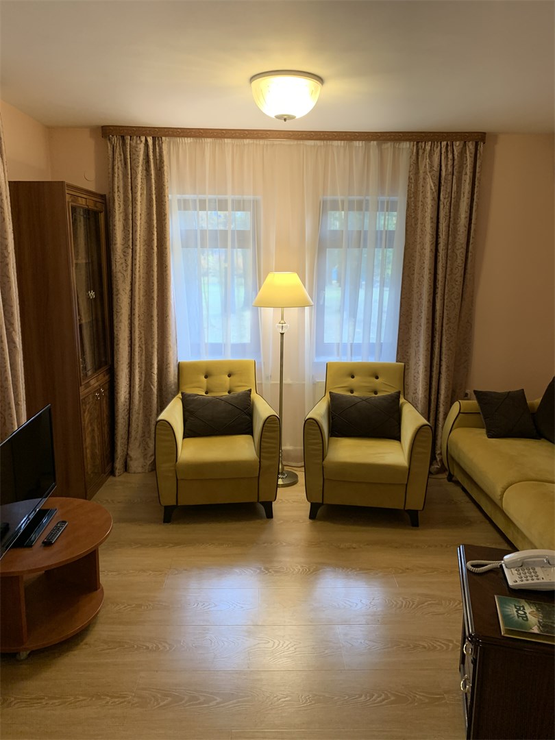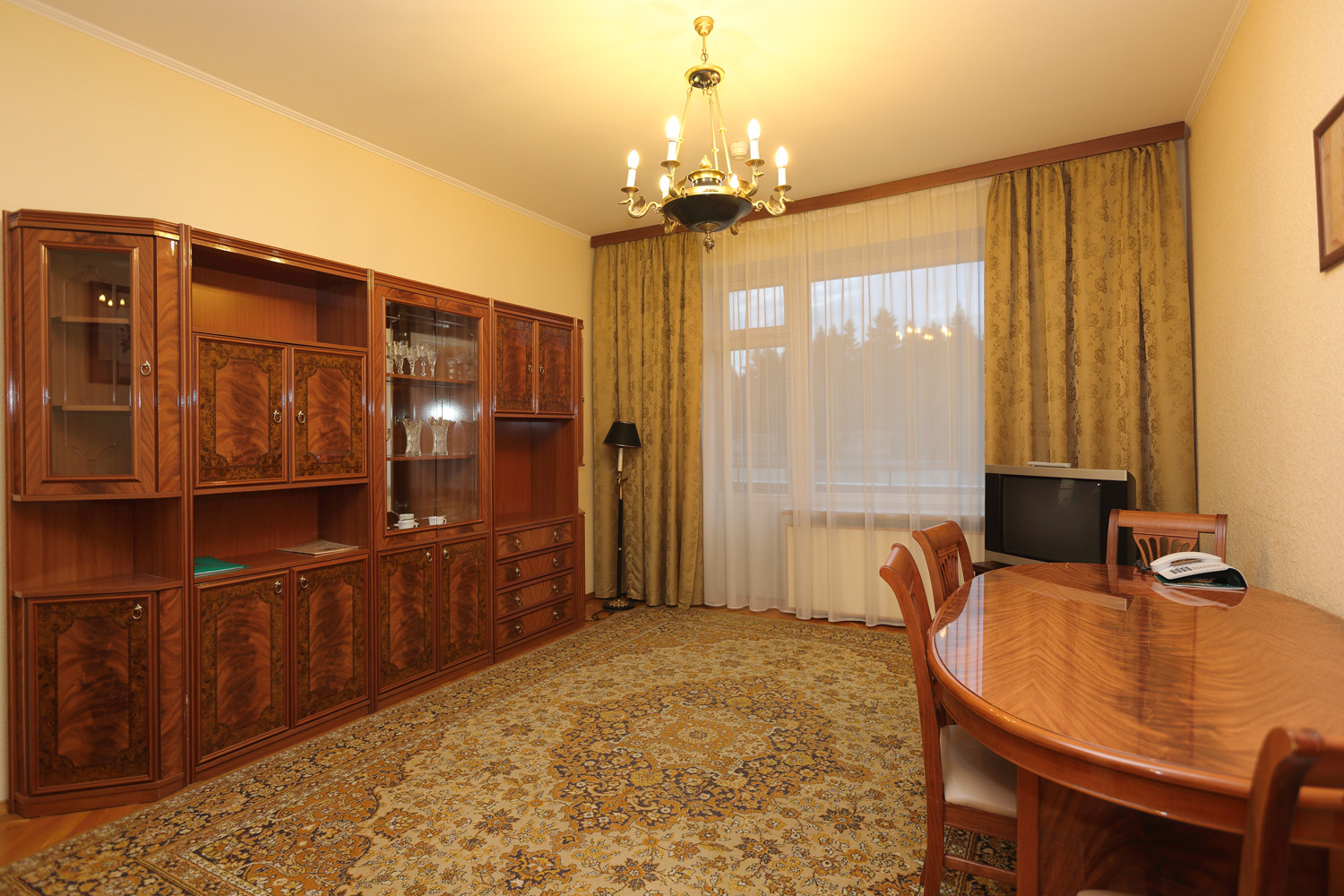 Номера категории Стандарт и Люкс разной вместимости укомплектованы удобным мебельным гарнитуров с двуспальными и односпальными кроватями, собственные санузлы, в зависимости от выбранного корпуса, оборудованы душевыми кабинами или ваннами. В ряде номеров имеются кондиционеры, в некоторых есть мини-кухни.Гостям санаторий предоставляет завтраки или 3-разовое питание по системе «шведский стол», кроме того, на территории работают ресторан, пивной бар, кафе, пиццерия, массажный и косметологический кабинеты, библиотека, спортивный и тренажерный залы, боулинг, теннисный корт, футбольное поле, зимой – трассы для лыж. Оздоровительный комплекс за дополнительную плату организует конные прогулки, по вечерам проводятся концертные и анимационные программы. Отдыхающим доступные открытые охраняемые парковки, услуги прачечной и химчистки. На территории комплекса организовано несколько оборудованных конференц-залов, каждый из которых вмещает до ста человек, оборудован банкетный зал и открытая площадка для проведения различных мероприятий.Для детей работает игровая комната с аниматорами, в кафе есть специальное детское меню, предоставляется прокат кроваток и спортивного инвентаря – роликов, самокатов, велосипедов.