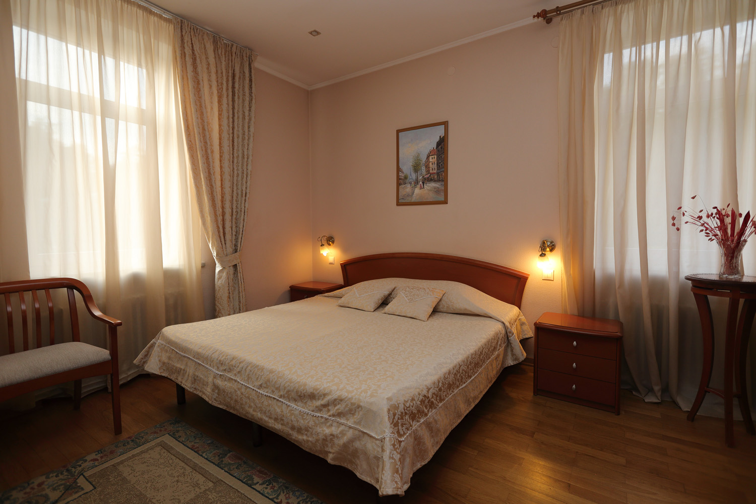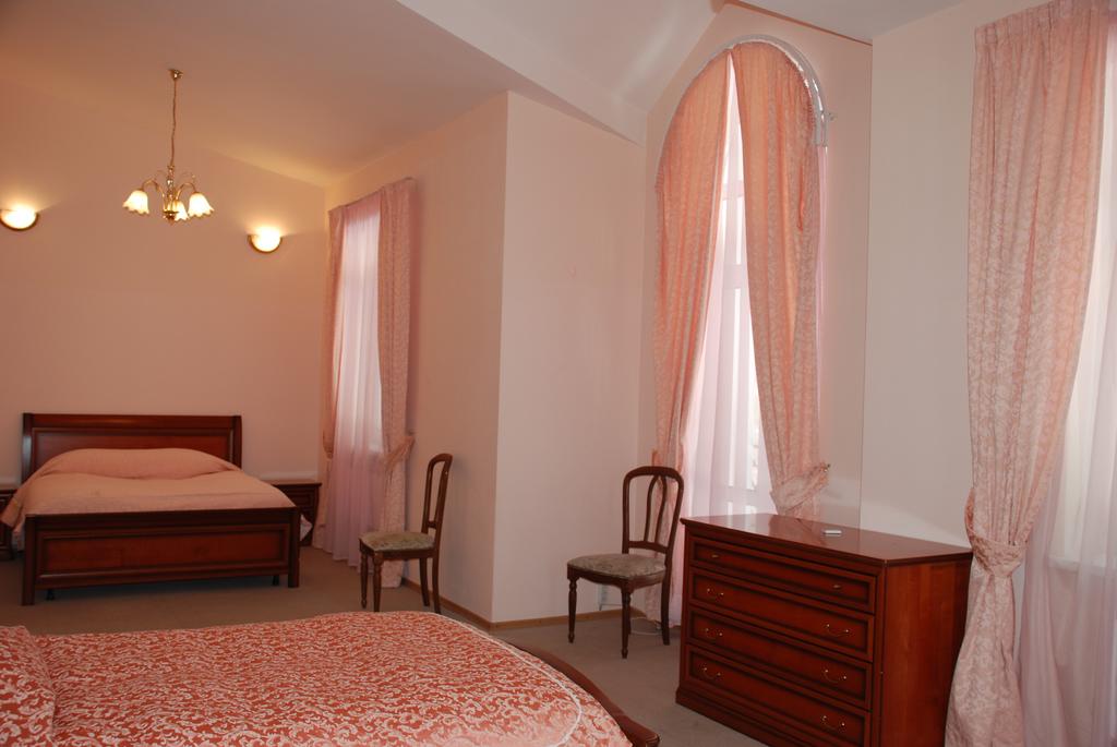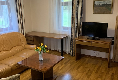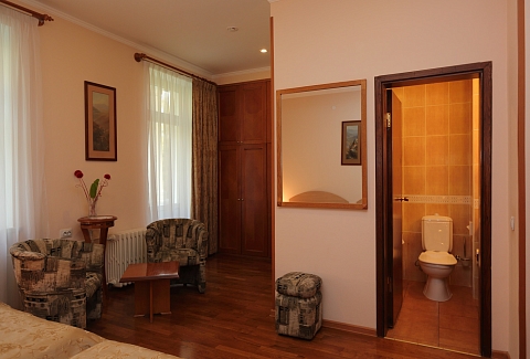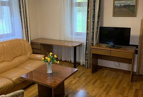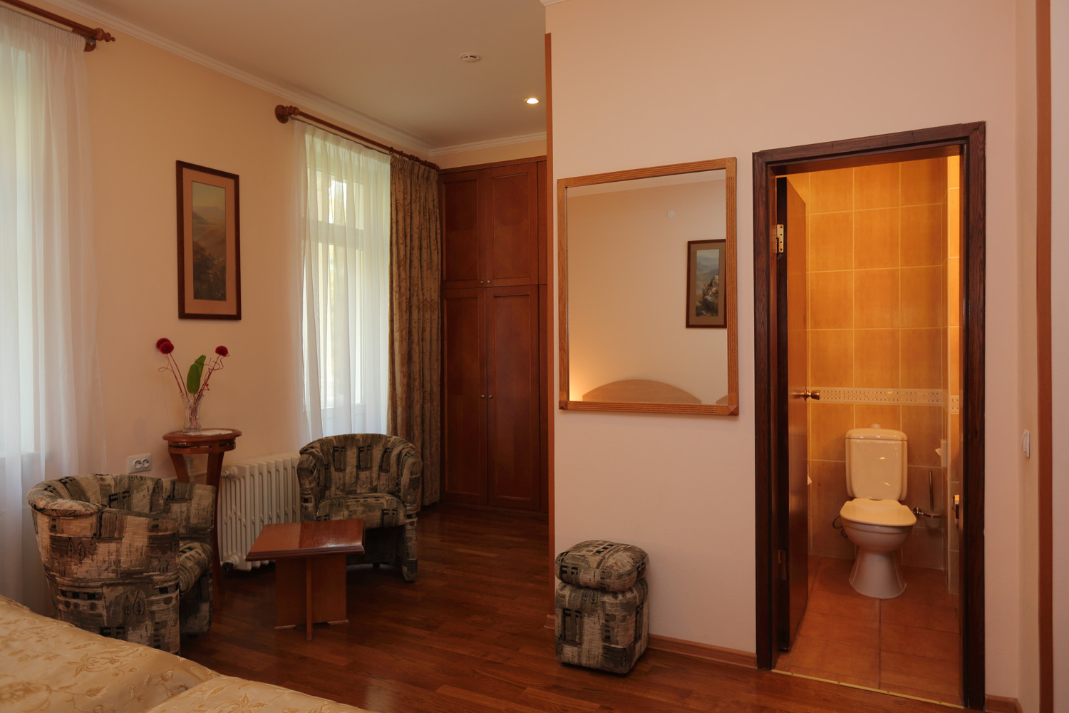 Номера категории Стандарт и Люкс разной вместимости укомплектованы удобным мебельным гарнитуров с двуспальными и односпальными кроватями, собственные санузлы, в зависимости от выбранного корпуса, оборудованы душевыми кабинами или ваннами. В ряде номеров имеются кондиционеры, в некоторых есть мини-кухни.Гостям санаторий предоставляет завтраки или 3-разовое питание по системе «шведский стол», кроме того, на территории работают ресторан, пивной бар, кафе, пиццерия, массажный и косметологический кабинеты, библиотека, спортивный и тренажерный залы, боулинг, теннисный корт, футбольное поле, зимой – трассы для лыж. Оздоровительный комплекс за дополнительную плату организует конные прогулки, по вечерам проводятся концертные и анимационные программы. Отдыхающим доступные открытые охраняемые парковки, услуги прачечной и химчистки. На территории комплекса организовано несколько оборудованных конференц-залов, каждый из которых вмещает до ста человек, оборудован банкетный зал и открытая площадка для проведения различных мероприятий.Для детей работает игровая комната с аниматорами, в кафе есть специальное детское меню, предоставляется прокат кроваток и спортивного инвентаря – роликов, самокатов, велосипедов.