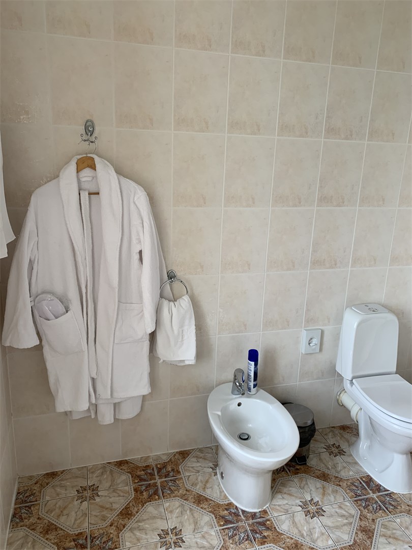 Санузел: биде, с душем, туалетные принадлежности, фен, халат