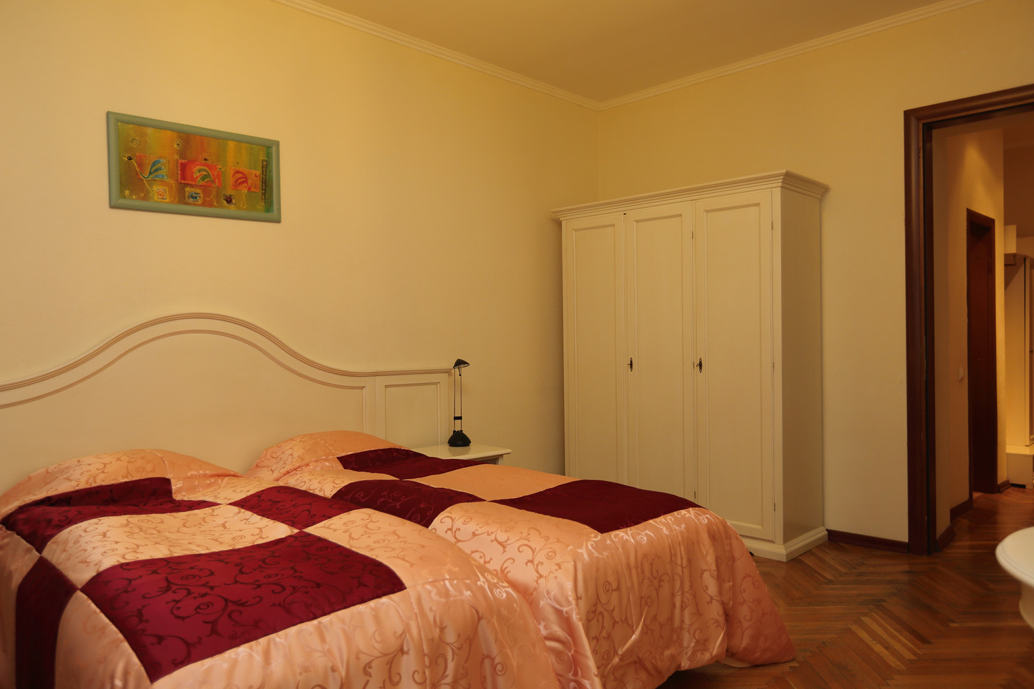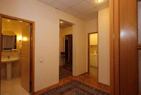 В номере: вешалка, диван, зеркало, кровати односпальные, кровать двуспальная, прикроватные тумбочки, стол, стулья, шкаф, кондиционер, микроволновая печь, набор посуды, плита электрическая, стиральная машина, телевизор, телефон, холодильник, электрочайник