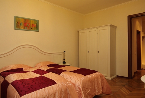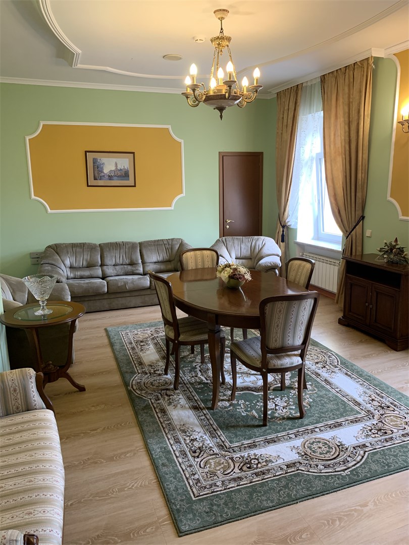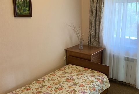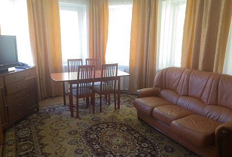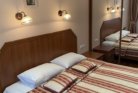 В номере: вешалка, диван, зеркало, кровати односпальные, кровати односпальные /одна двуспальная кровать, кровать двуспальная, прикроватные тумбочки, стол, стол обеденный, стулья, шкаф, набор посуды, плита газовая, телевизор, телефон, холодильник, чайный набор посуды, электрочайник