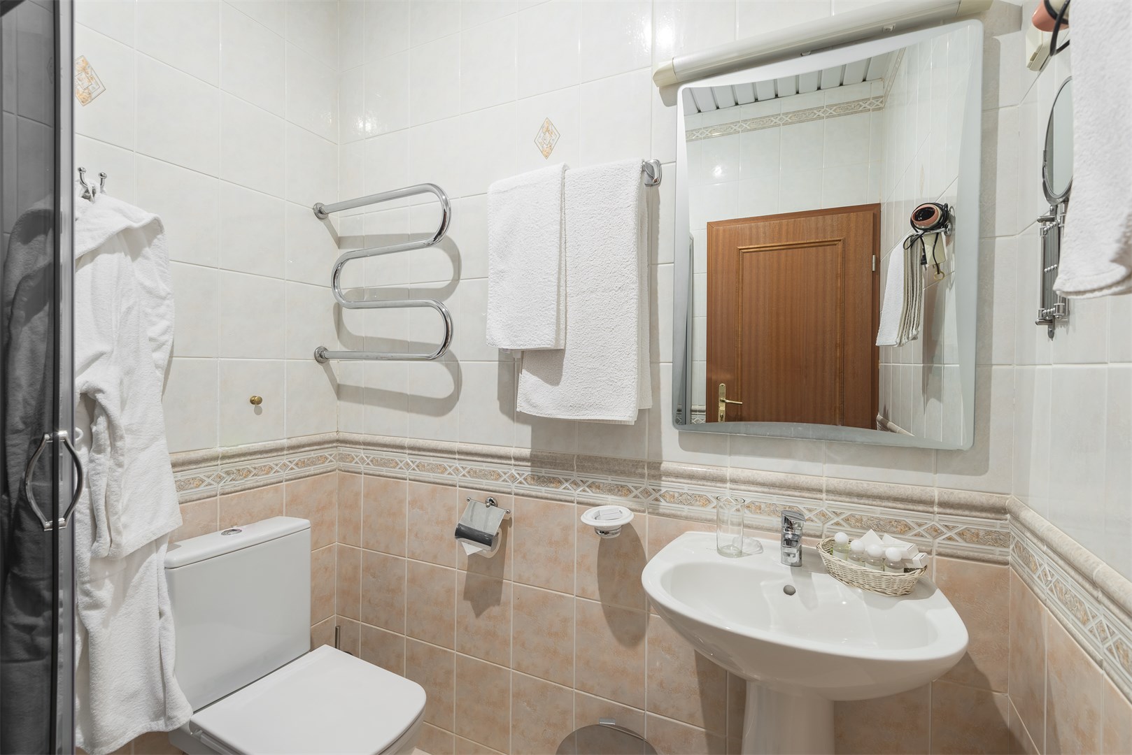 Санузел: тапочки, туалетные принадлежности, фен, халат