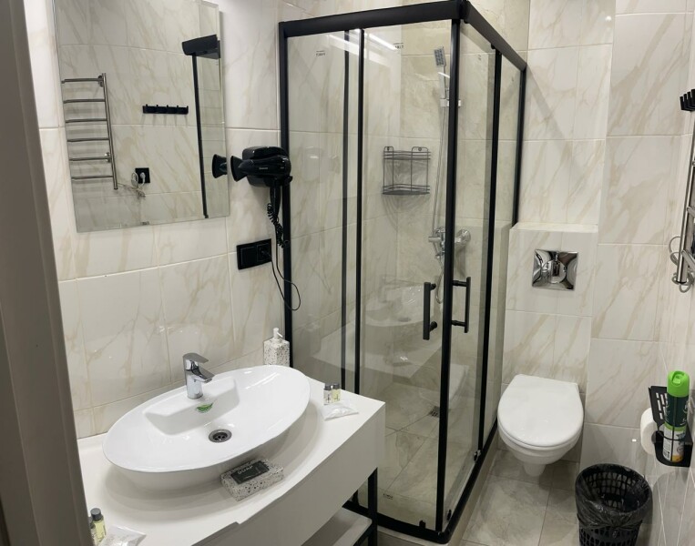 Санузел: с душем, туалетные принадлежности, фен