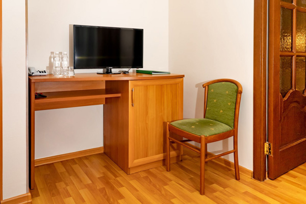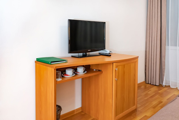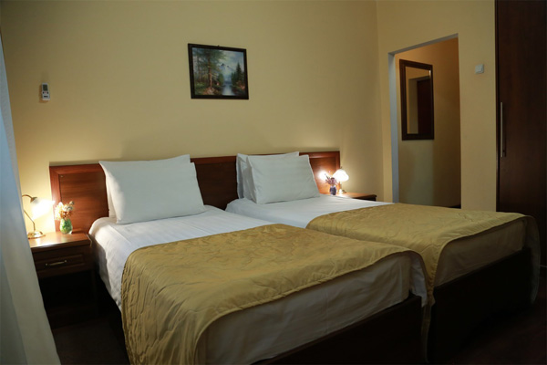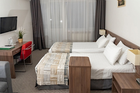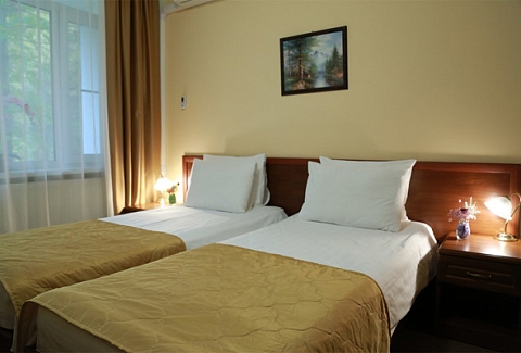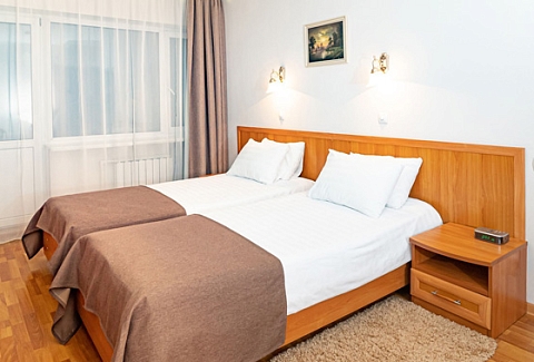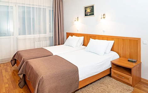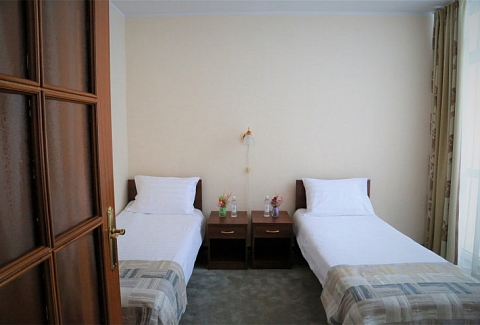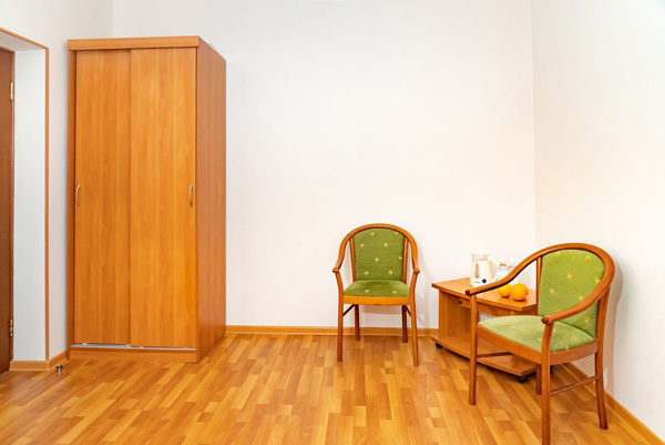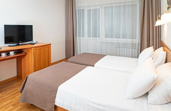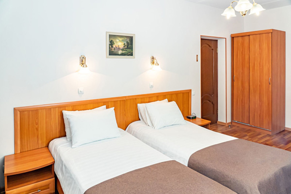 В номере: зеркало, кровати односпальные, прикроватные тумбочки, стол, стулья, шкаф, мини-холодильник, телевизор, телефон, чайный набор посуды, электрочайник