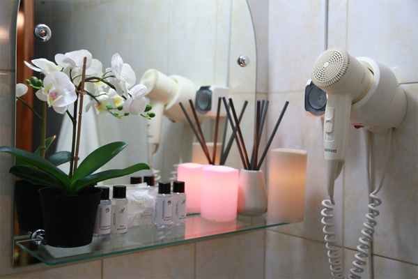 Санузел: с ванной или душевой кабиной, туалетные принадлежности, фен, халат