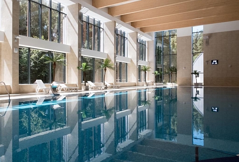 Самолетом до а/п Внуково, далее рейсовым автобусом №911 до остановки «Метро Саларьево», далее на метро до станции «Ольховая», далее рейсовым автобусом №422 до остановки «Оздоровительный комплекс Десна», далее пройти 1,65 км до отеля.