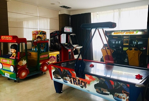 В номере: зеркало, ковровое покрытие, кресло, кровати односпальные /одна двуспальная кровать, прикроватные тумбочки, стол, стул, шкаф, кондиционер, мини-холодильник, сейф, телевизор, телефон, чайный набор посуды, электрочайник
