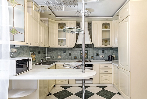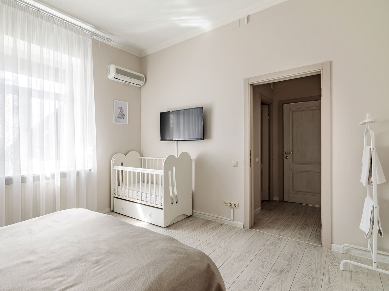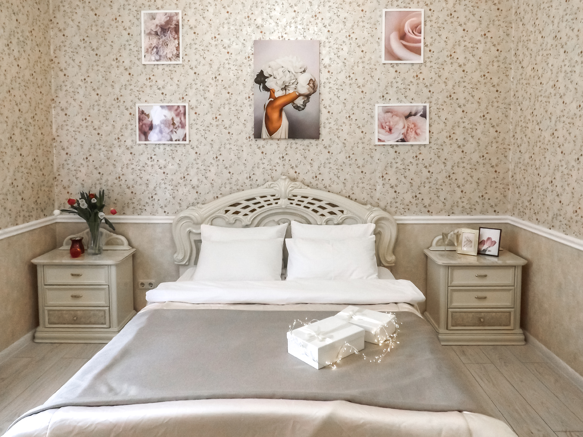 В номере: вешалка, диван, кресла, кровать двуспальная, прикроватные тумбочки, стол, стулья, тумба, шкаф, гладильная доска, духовой шкаф, кондиционер, микроволновая печь, набор посуды, плита электрическая, стиральная машина, телевизор ЖК, утюг, холодильник, чайный набор посуды, электрочайник