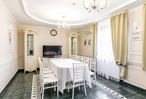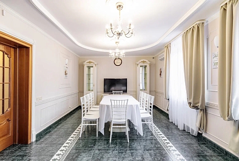 Загородный комплекс рядом с Москвой, совмещающий в себе большой дом с 13 спальнями, банкетный зал вместимостью до 60 гостей. Спа зоны с бассейнами и саунами. Уютная территория с яблоневым садом, беседками и мангалом.Удобный формат площадки сочетает в себе все преимущества гостиницы и ресторана при значительно меньшем бюджете и возможности наслаждаться праздником 24 часа в сутки.Проводятся самые красивые свадьбы, яркие вечеринки и дни рождения.