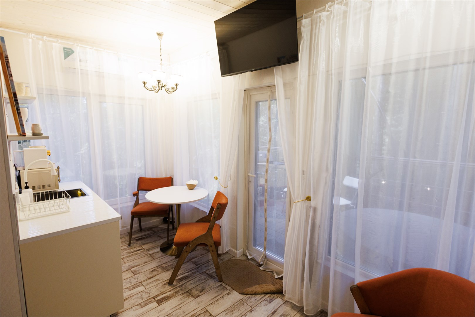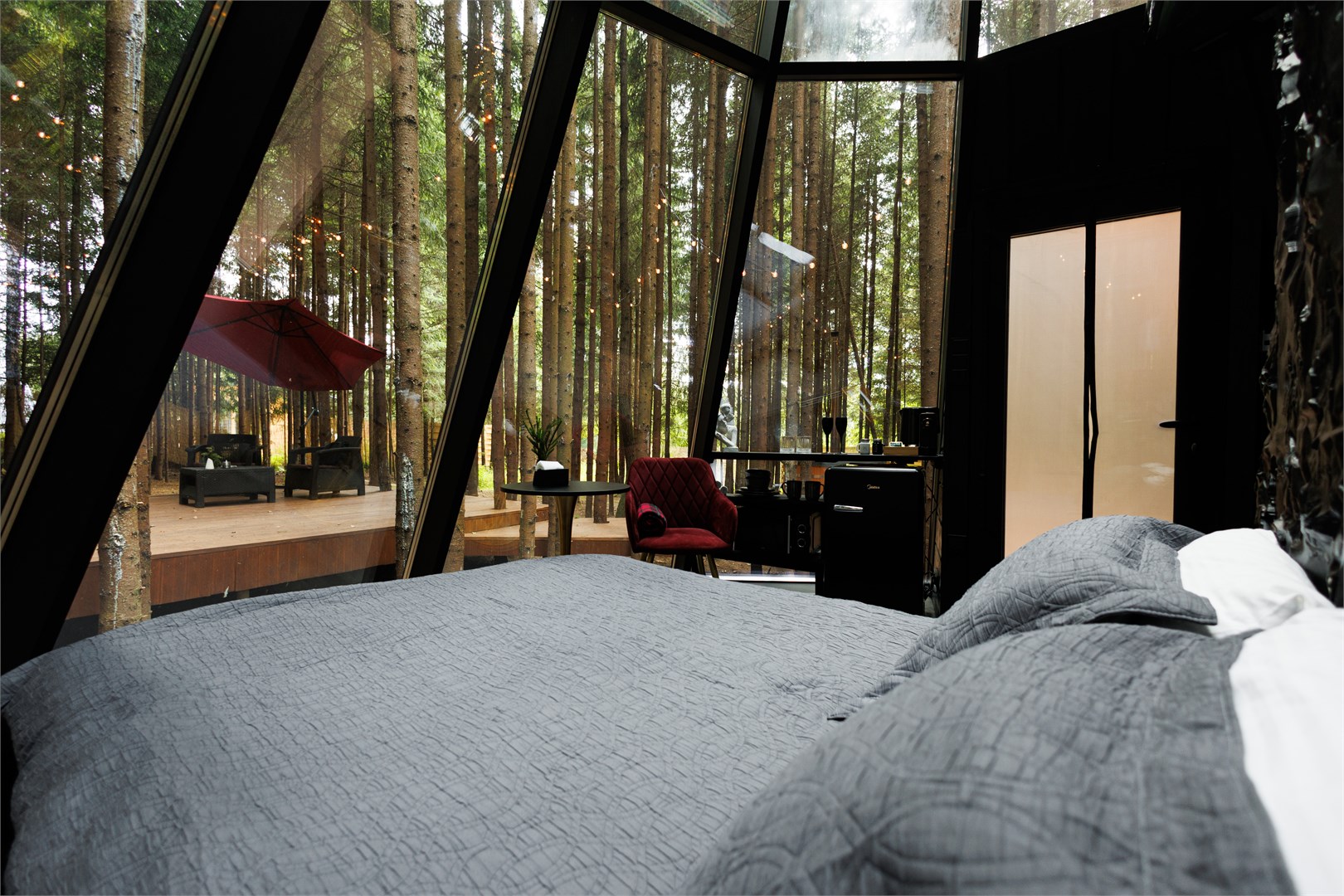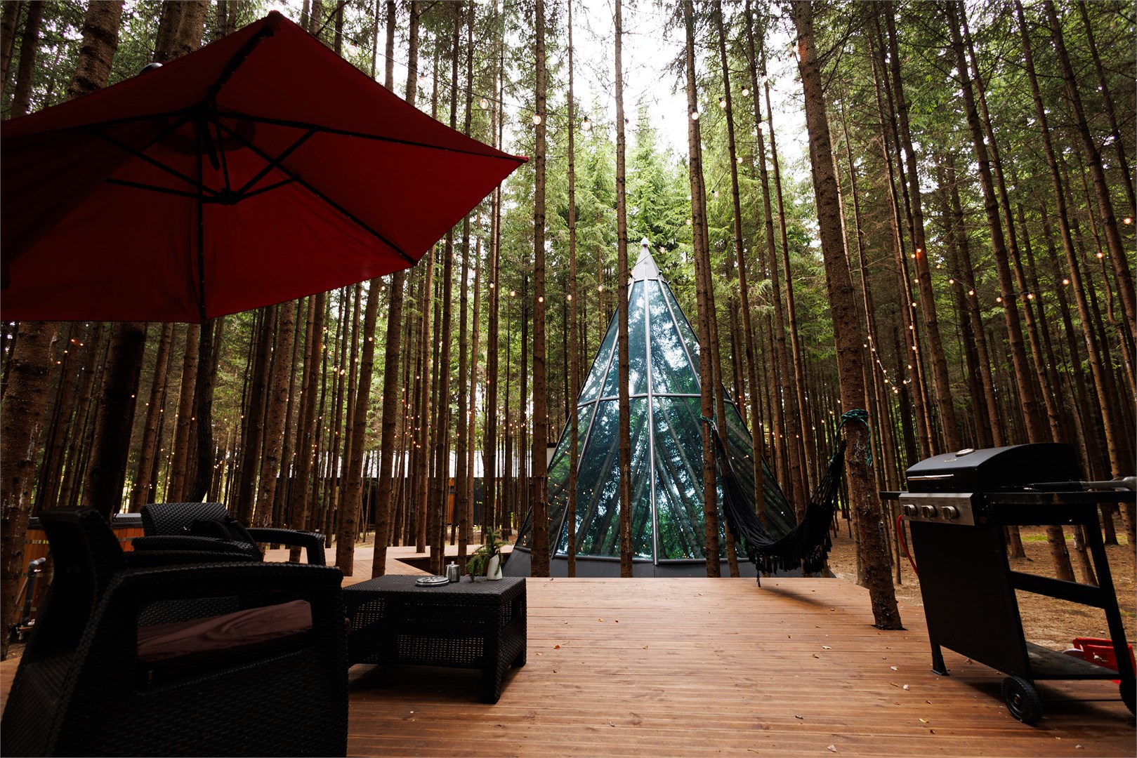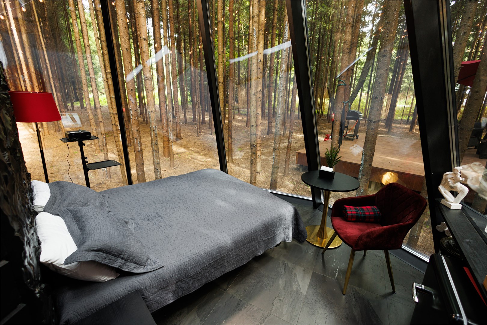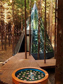 Для прибывающих на личном авто предусмотрена парковка, а те, кто ценит время, могут воспользоваться вертолётной площадкой.Концепция отеля строится на трёх уникальных типах домов, каждый из которых предлагает свой формат единения с природой. Знаменитый треугольный А-фрейм «Путешественник» площадью 50 м² создан для тех, кто ищет уют в окружении древесных текстур и готов вместить компанию до четырёх человек. Стеклянный дом-пирамида «Любовник» (25 м²) с прозрачными стенами дарит иллюзию полного растворения в лесном пейзаже. А зеркальный дом на дереве «Романтик», поднятый на четырёхметровую высоту, отражает кроны елей и становится незаметным для посторонних глаз убежищем для двоих. Все дома оснащены по стандартам премиум-класса: продумана система кондиционирования, телевизоры и беспроводной интернет. В каждом санузле гостей ждут фен, мягкие банные халаты, тапочки и набор полотенец. Для уюта предусмотрены гигиенические принадлежности, а также чайно-кофейный набор и бутилированная вода.Территория отеля продумана для полной перезагрузки. Главная «фишка» каждого дома — персональная горячая купель на террасе. Это может быть классическая купель или японская фурако, где приятно проводить вечера даже в холодное время года. Для гастрономических впечатлений работает кафе «Ёлкино» с аутентичной деревенской кухней. Здесь же можно организовать питание по системе «всё включено», чтобы полностью абстрагироваться от бытовых забот. Особого внимания заслуживает сервис «Кино-купель» — романтический ритуал с просмотром фильма прямо в тёплой воде под открытым небом. Также отель предлагает организацию камерных мероприятий: трогательных свадеб, девичников или мальчишников в необычном формате.«ЁЛКИНО.Life» — это эксклюзивное пространство для пар и индивидуальных путешественников, ищущих тишину и возможность восстановить связь с собой. Это место не про шумные компании, а про глубокий релакс, медитативные прогулки по сказочному еловому лесу и вау-эффект от архитектуры домов. Атмосфера здесь располагает к неспешным разговорам, чтению книг на веранде и полной перезагрузке после напряжённых будней. Отдых в этом отеле оставляет после себя не просто фотографии, а ощущение обретённой гармонии.