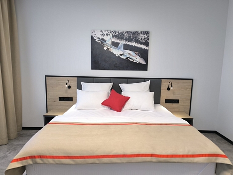 Для работы или планирования маршрутов предусмотрена удобная рабочая зона, а стабильный безлимитный интернет позволяет оставаться на связи.Ванная комната, выполненная по евростандарту, укомплектована всем набором косметических принадлежностей: от шампуня до зубных наборов. Утро здесь принято начинать с чашечки ароматного кофе или свежего чая, которые можно приготовить прямо в номере. На первом этаже здания работает кафе-шашлычная с разнообразным меню, включающим горячие блюда, закуски и домашнюю выпечку, которую с удовольствием доставят прямо в номер.Гостиница ориентирована на гостей с любыми потребностями: круглосуточная стойка регистрации и обслуживание номеров доступны 24 часа в сутки. Для путешествующих на автомобиле предусмотрена парковка с видеонаблюдением по периметру. Гибкая политика почасового проживания и индивидуальный подход позволяют заселиться раньше или выехать позже при наличии свободных номеров, делая пребывание максимально комфортным независимо от времени прибытия рейса.