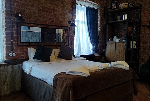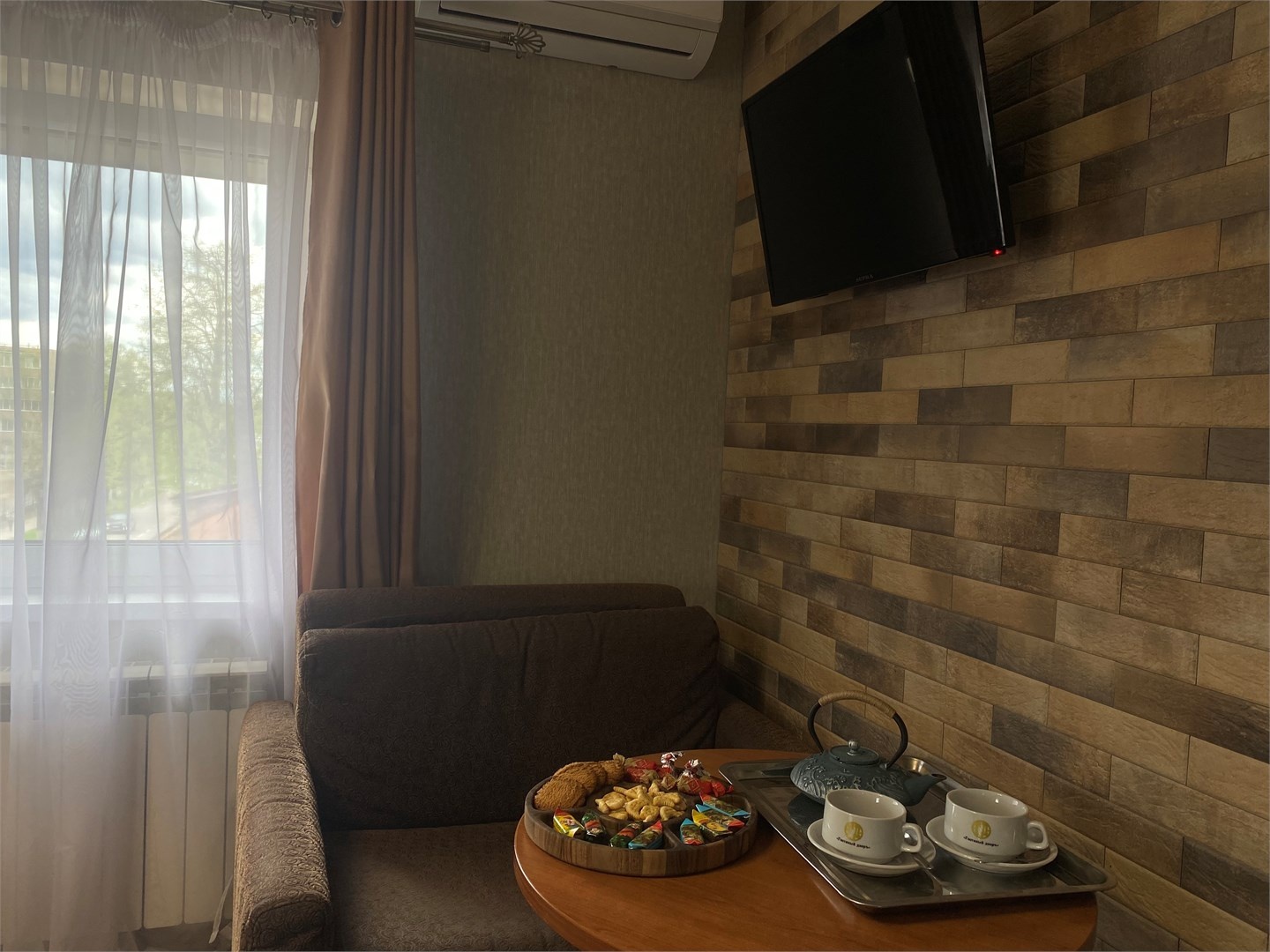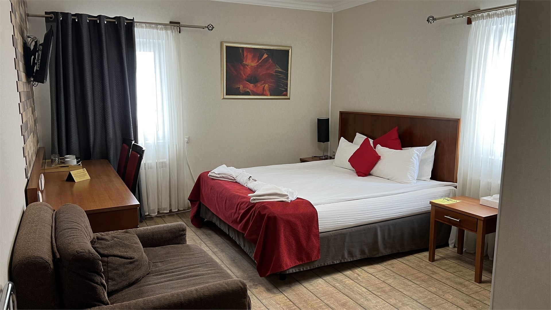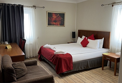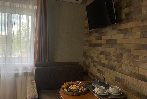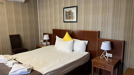 В номере: диван, зеркало, кровать двуспальная, стол, стул, шкаф, кондиционер, телевизор ЖК