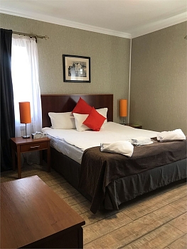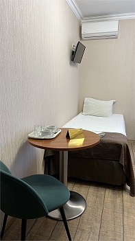 В номере: зеркало, кровать двуспальная, стол, стул, шкаф, кондиционер, телевизор ЖК
