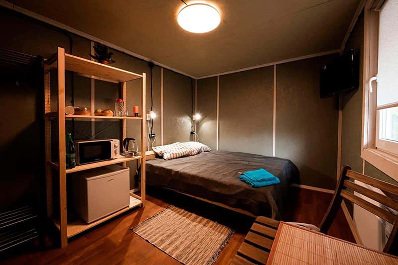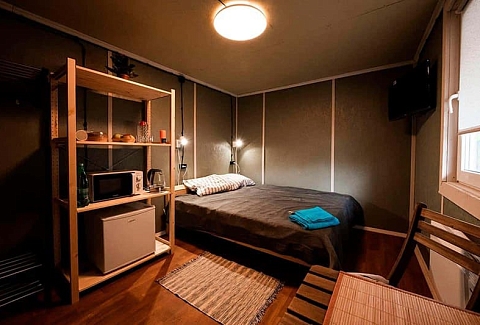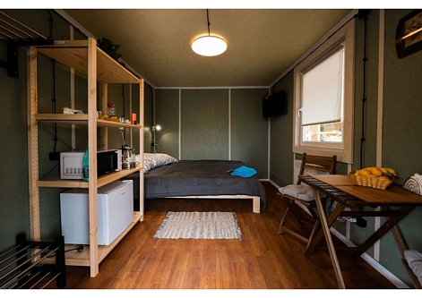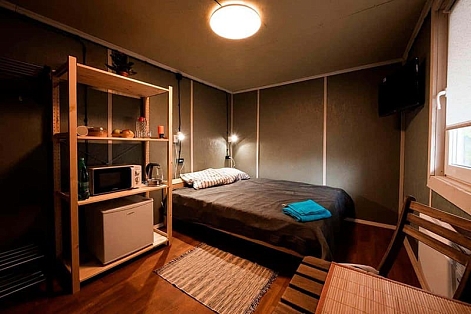 В номере: кровати односпальные /одна двуспальная кровать, стол, стулья, тумба, микроволновая печь, телевизор, холодильник, электрочайник