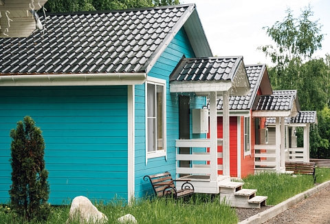 Гребнево имеет долгую интересную историю, среди владельцев усадьбы значатся такие личности как боярин Бельский, князья Юрий Трубецкой и Дмитрий Голицын.Комплекс занимает обширную территорию с барскими прудами, липовыми и пихтовыми аллеями, общей площадью 200 гектаров. Для размещения гостям предлагаются современные двухэтажные деревянные коттеджи. В некоторых домиках встречается оборудованная кухня, в других — есть вся необходимая бытовая техника — электрочайник, микроволновая печь, холодильник. В коттеджах улучшенных категорий есть собственная ванная комната, в бюджетных вариантах санузел и душевые находятся на территории. Кроме того, у каждого коттеджа есть собственная меблированная терраса.На территории для гостей организована барбекю-зона, есть летняя веранда и шатры для проведения праздничных мероприятий — юбилеев, свадеб, корпоративов. В распоряжении отдыхающих русская баня с чаном и сауна с парной. Гребнево предлагает гостям различные варианты активного отдыха — спортивные командные игры, конные прогулки, прогулки на катамаранах и квадроциклах, зимой — заливаются горки, работает прокат тюбингов, снегоходов, лыж. В гостиничном комплексе регулярно проходят различные фестивали, выставки, встречи с известными деятелями культуры и искусства. Также среди услуг — высокоскоростной интернет и охраняемая парковка для гостей на машинах. Для детей недалеко от домиков организована игровая площадка.