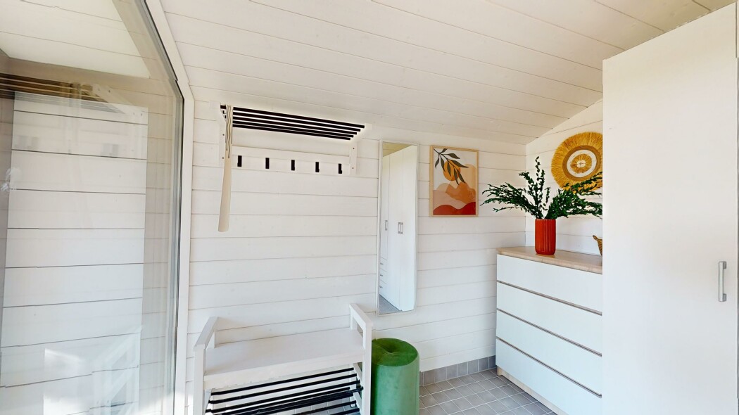 В номере: вешалка, диван, зеркало, кровати полутороспальные, кровать двуспальная, прикроватные тумбочки, стол, стулья, шкаф, гладильная доска, кондиционер, кофемашина, микроволновая печь, набор посуды, плита электрическая, стиральная машина, сушилка для белья, телевизор ЖК, умная колонка, утюг, холодильник, чайный набор посуды, электрочайник
