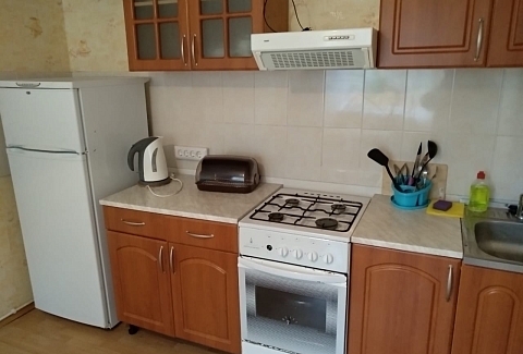 В номере: вешалка, диван, зеркало, кровать двуспальная, стол, стулья, шкаф, гладильная доска, духовой шкаф, кондиционер, микроволновая печь, набор посуды, плита газовая, стиральная машина, сушилка для белья, телевизор ЖК, утюг, холодильник, чайный набор посуды, электрочайник