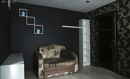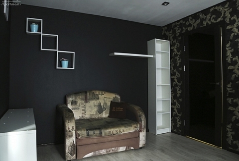 В номере: вешалка, диван, зеркало, кресло, кровать двуспальная, стол, стулья, шкаф, духовой шкаф, микроволновая печь, набор посуды, плита электрическая, стиральная машина, телевизор, холодильник, электрочайник