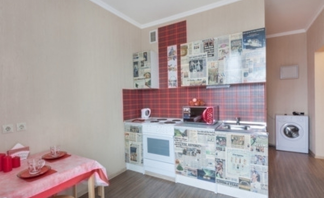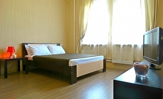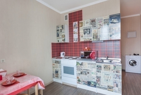 В номере: вешалка, зеркало, кровать двуспальная, стол, стулья, шкаф, микроволновая печь, набор посуды, плита электрическая, стиральная машина, телевизор, холодильник, электрочайник