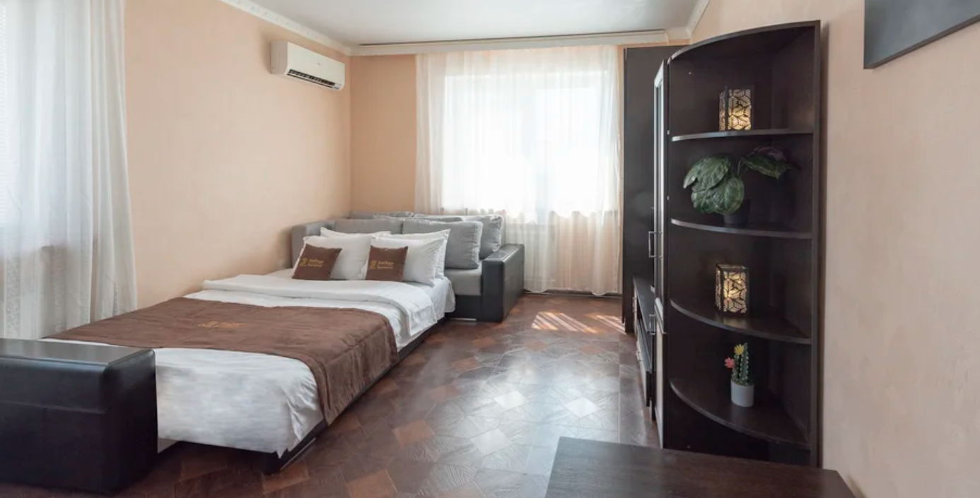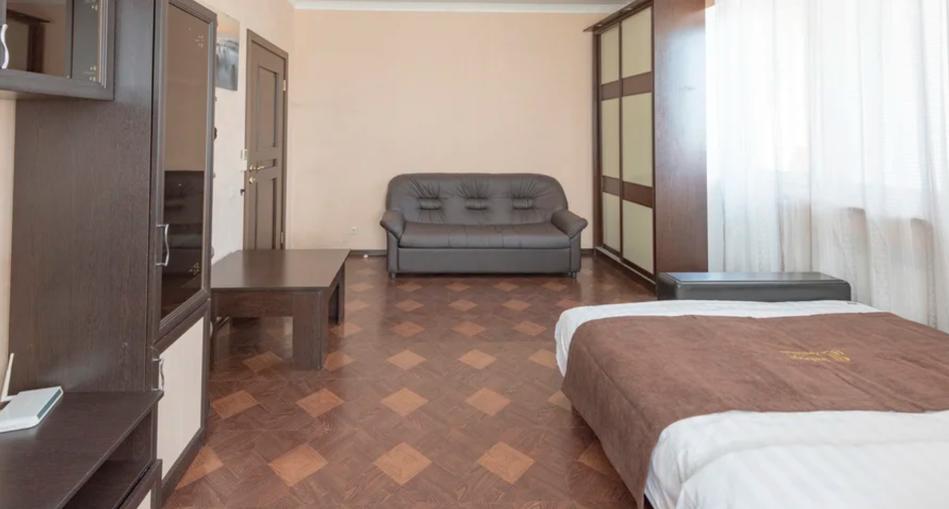 В номере: вешалка, диван, зеркало, стол, стулья, шкаф, кондиционер, микроволновая печь, набор посуды, плита электрическая, стиральная машина, телевизор, холодильник, электрочайник