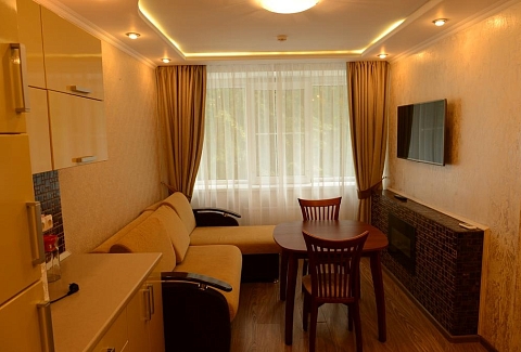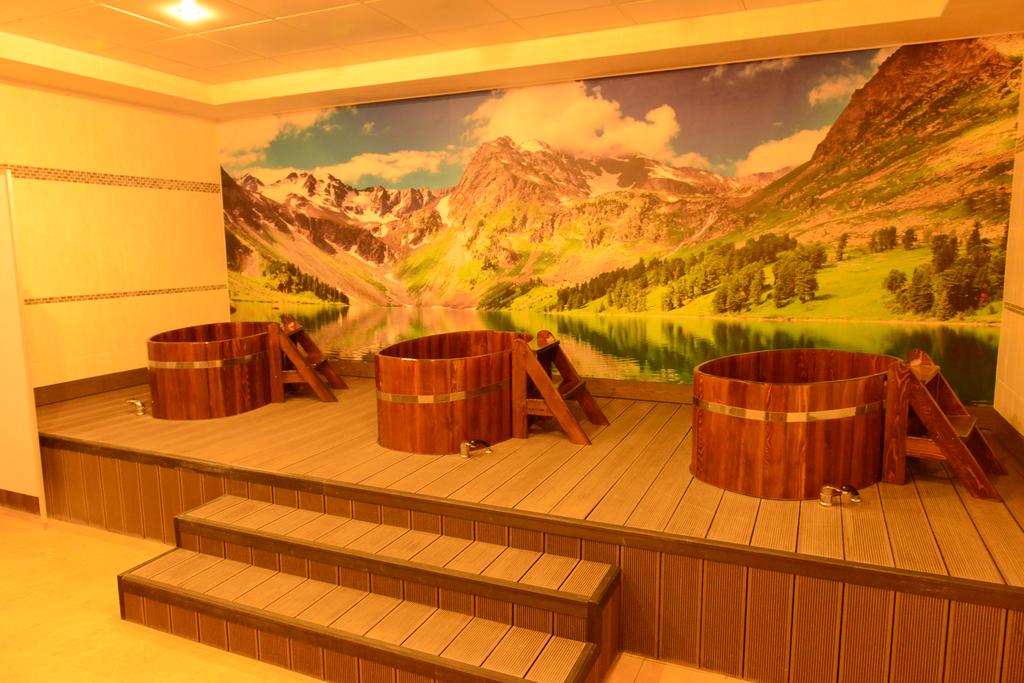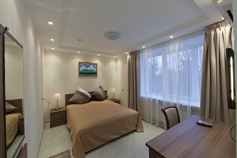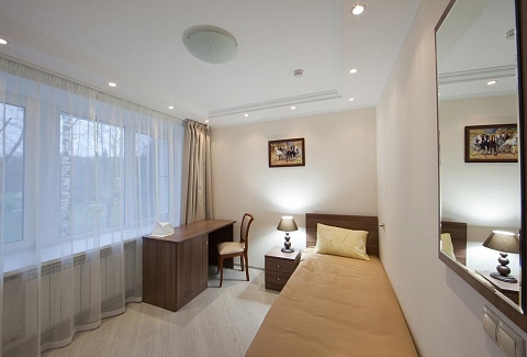 Все номера, оформленные в теплых оттенках, укомплектованы необходимой мебелью и бытовой техникой, в каждом имеется собственный санузел с душем, а люксы оборудованы мини-кухней.Оздоровительный комплекс предлагает отдыхающим питание по системе «меню-заказ». Для гостей на территории работает банный комплекс с баней, сауной, крытый бассейн, тренажерный зал, организована площадка для спортивных игр, есть бильярд. Всем постояльцам доступны беспроводной интернет, охраняемая парковка, прокат велосипедов, лыж, санок. Для детей на территории обустроена игровая площадка.