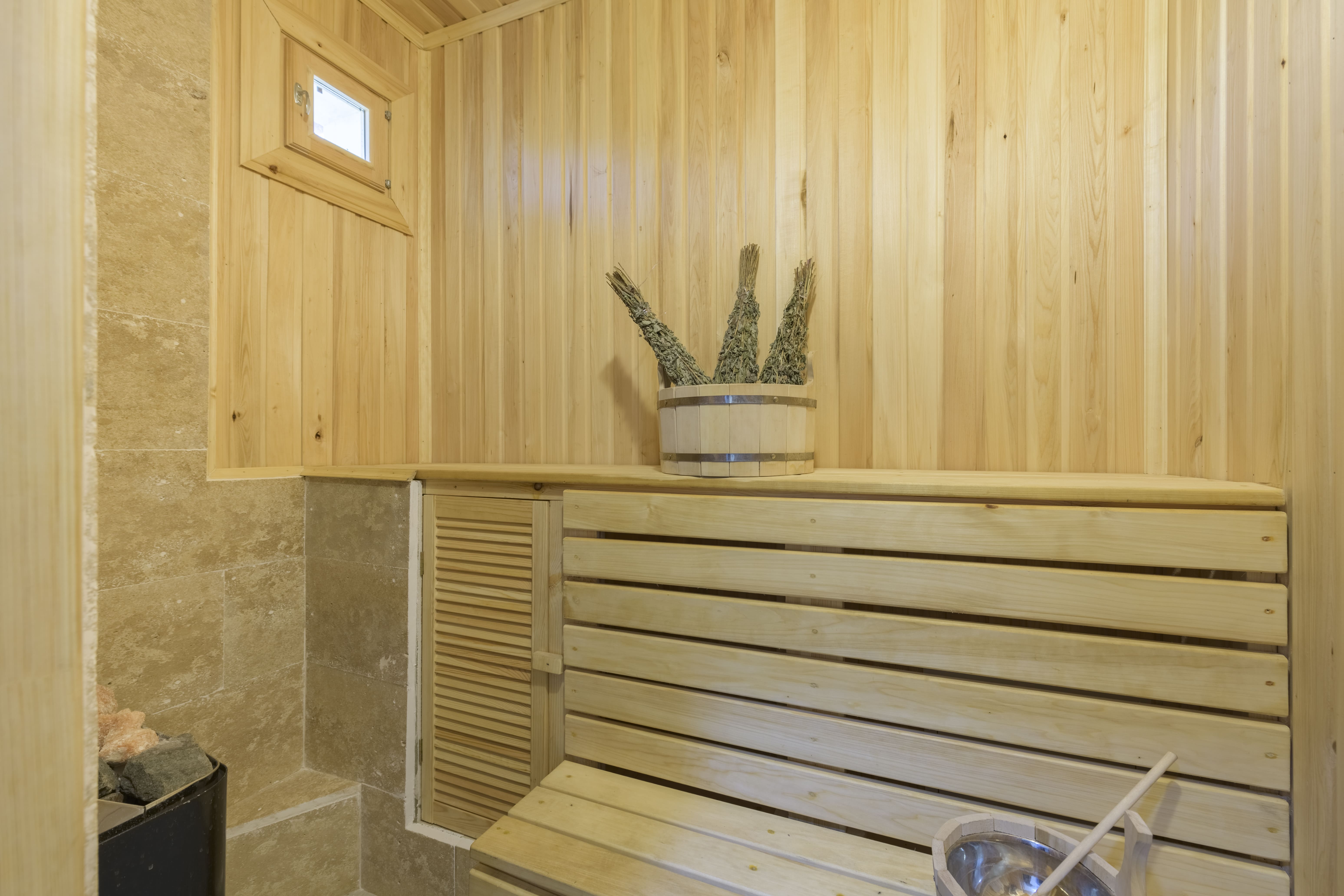 Санузел: сауна, с душевой кабиной, туалетные принадлежности, фен