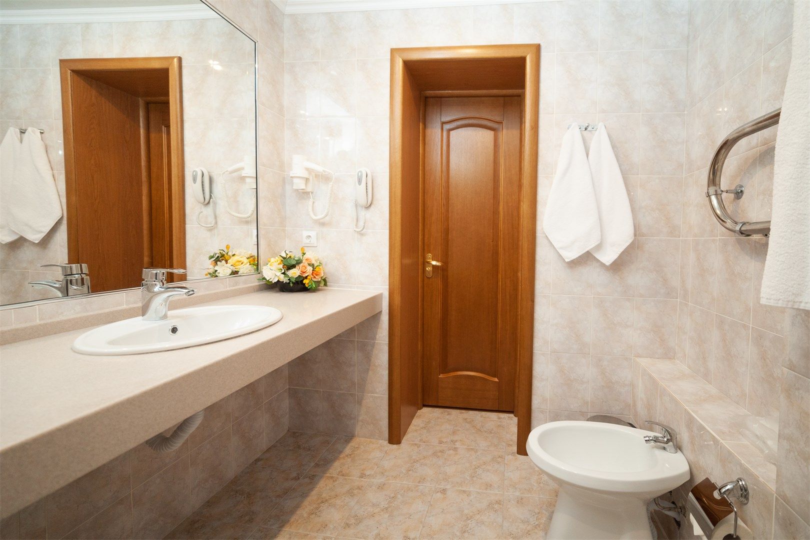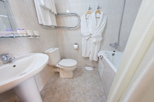 Санузел: биде, с ванной, тапочки, туалетные принадлежности, фен, халат