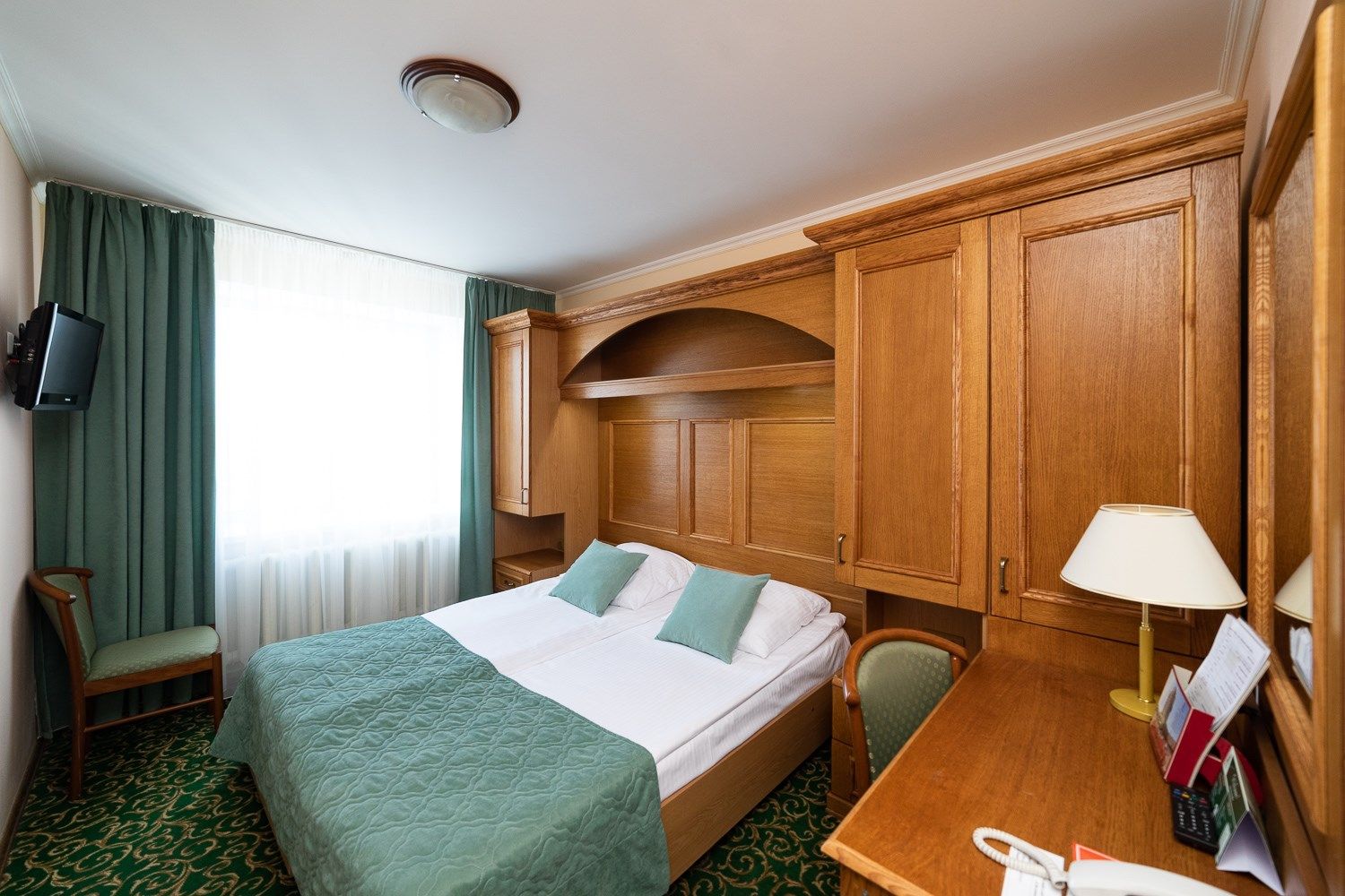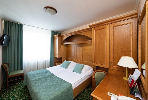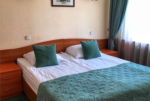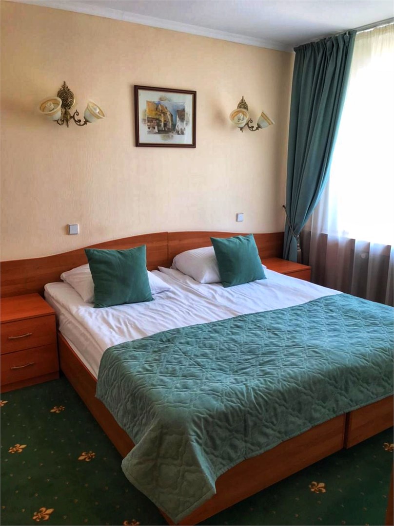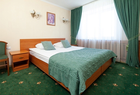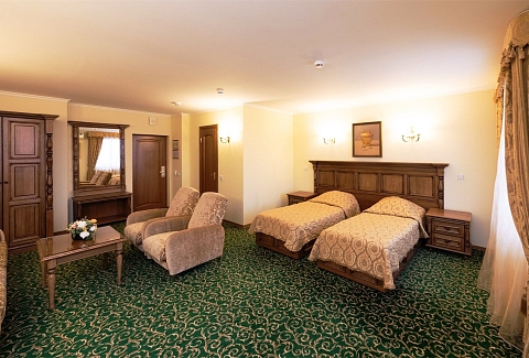 В номере: кровати односпальные /одна двуспальная кровать, прикроватные тумбочки, стол, стулья, шкаф, телевизор, телефон, холодильник