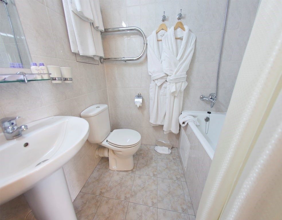 Санузел: с душем или ванной, туалетные принадлежности