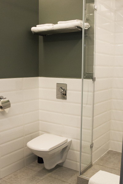 Санузел: с душем, туалетные принадлежности, фен