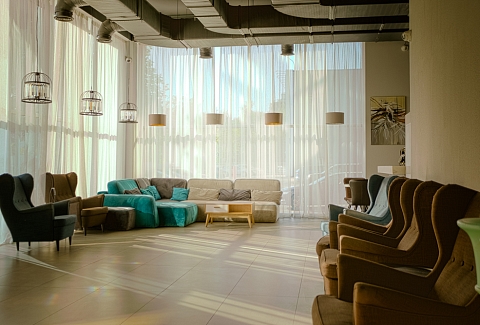 Ещё 18 номеров повышенной комфортности построены в 2024 году. На первом этаже рядом с рецепцией находится лобби бар. На нулевом этаже гостям представлено уютное кафе с потрясающе вкусной едой.Специально для гостей c 8:00 утра сервируется завтрак «шведский стол», сочетающий широкий выбор свежих фруктов, горячих блюд и выпечки.