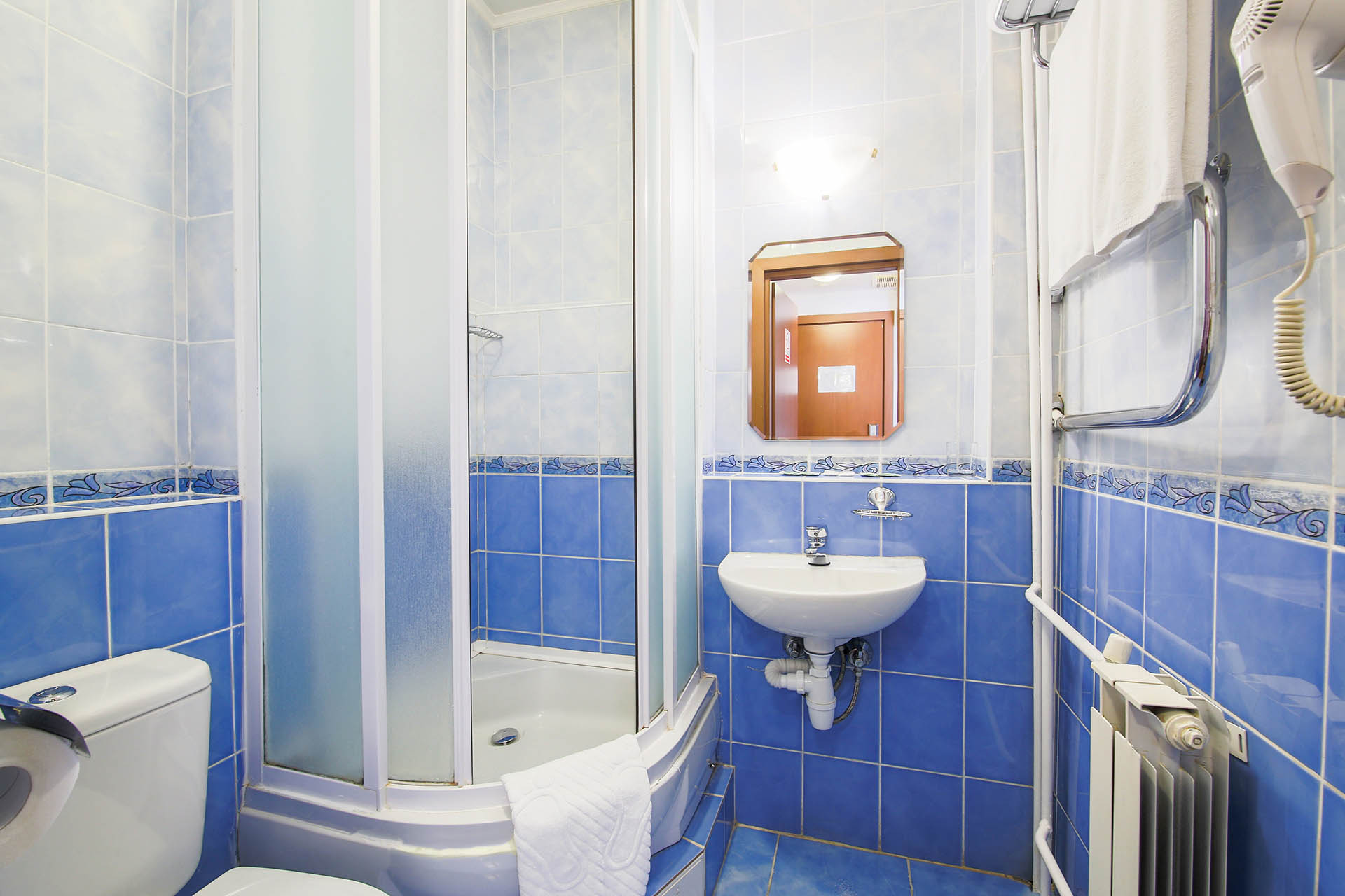 Санузел: с душевой кабиной, туалетные принадлежности, фен