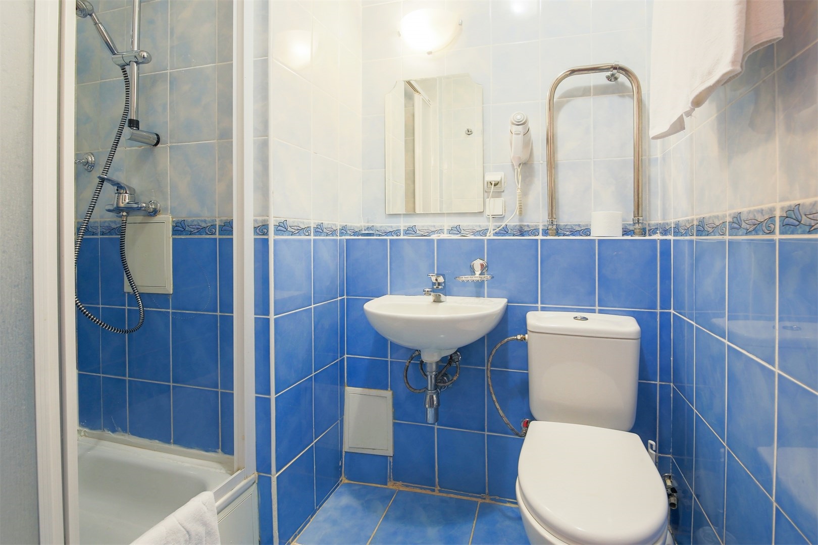 Санузел: с душем или ванной, туалетные принадлежности, фен
