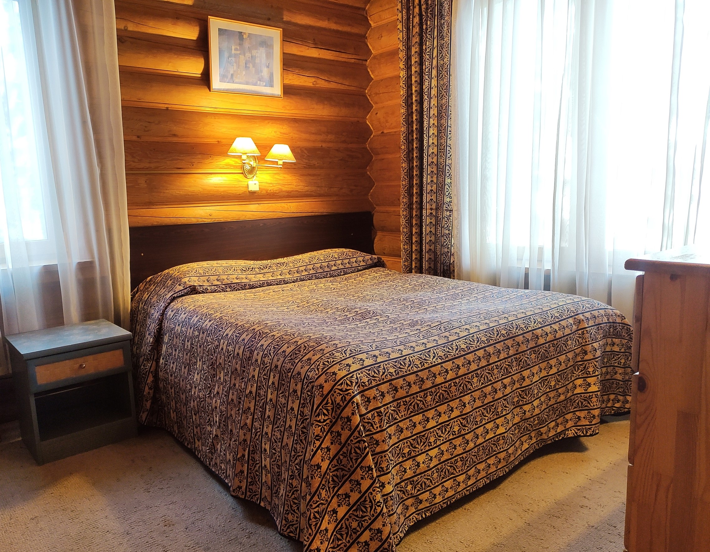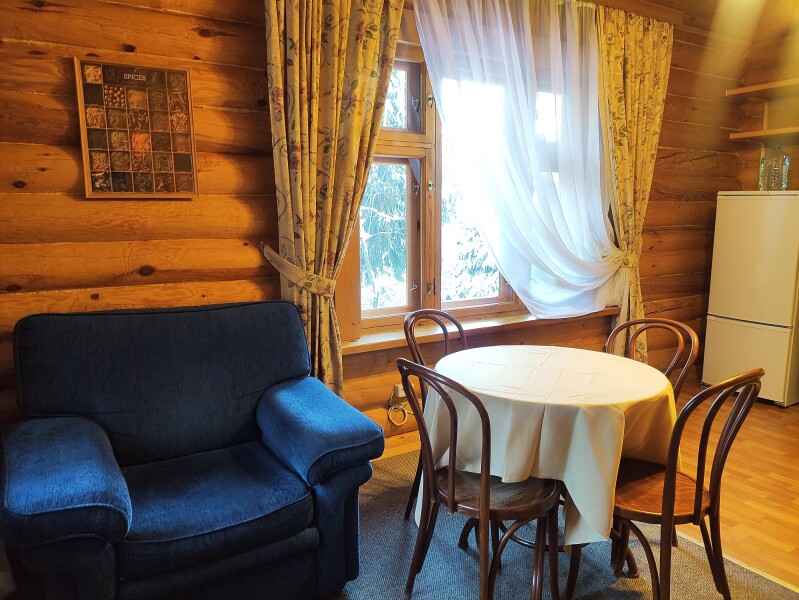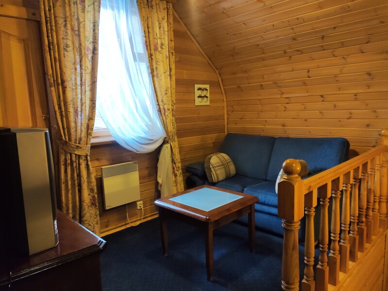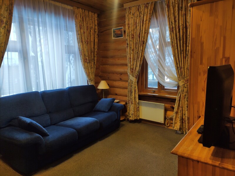 В номере: диван, кровать двуспальная, кровать односпальная, кухонная мебель, телевизор, телефон, холодильник