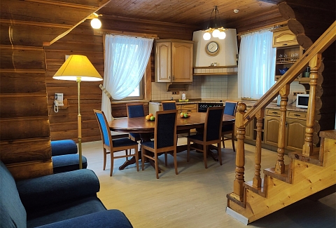 В номере: диван, кресло, кровать двуспальная, кровать односпальная, кухонная мебель, телевизор, телефон, холодильник