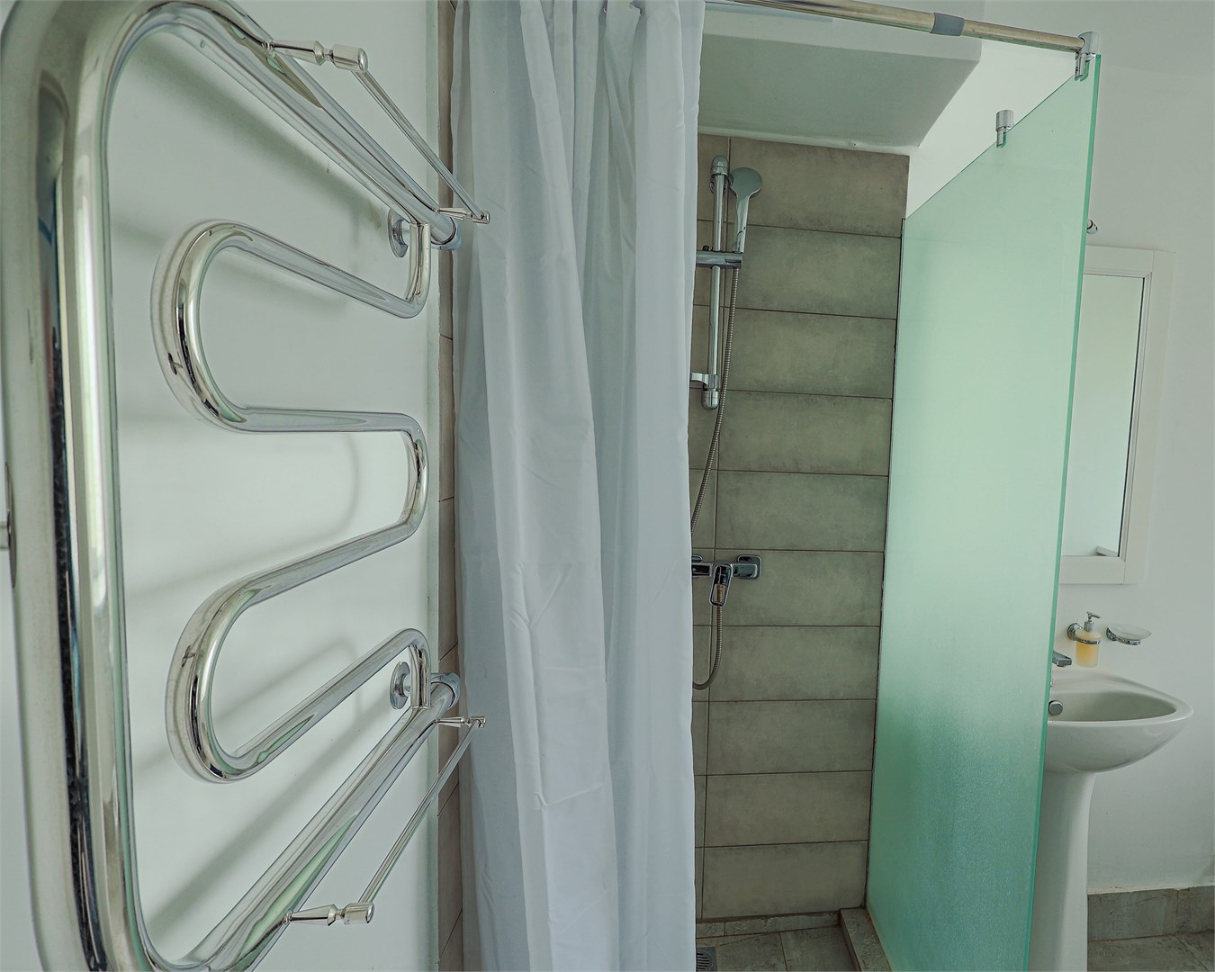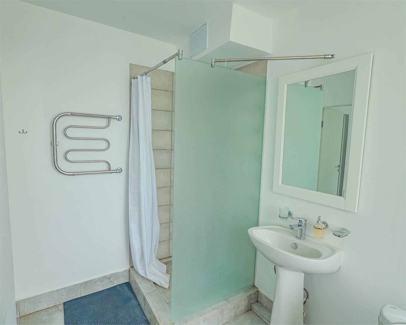 Санузел: с душем, туалетные принадлежности, фен