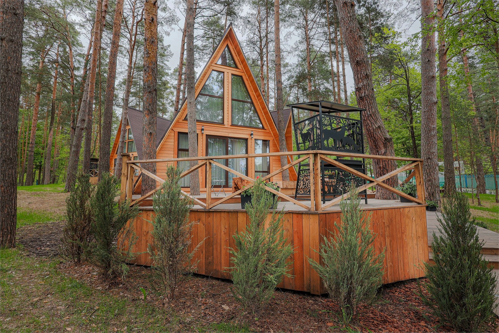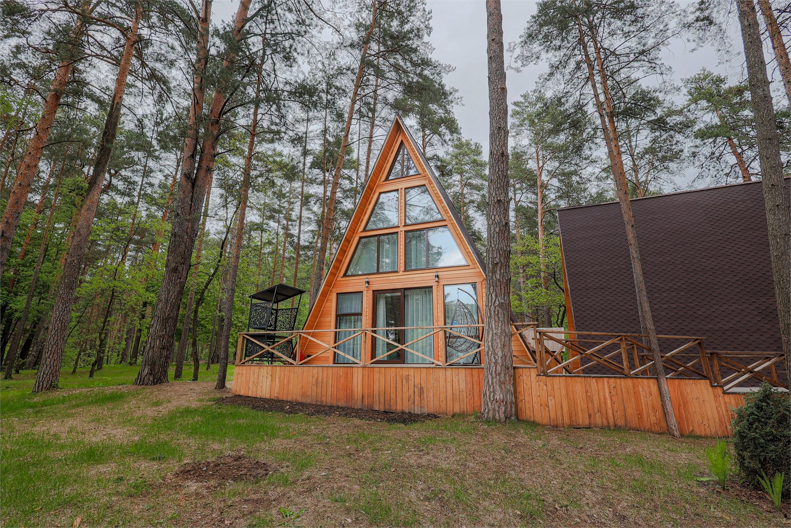База отдыха «Лесная опушка» это новейшая локация для семейного время препровождения и активного отдыха. База находится в заповедной зоне в окружении густого соснового леса на берегу реки Оки.Для проживания предлагаются как стильные двухместные и трехместные номера, так и отдельные уютные А-Фрейм домики. В каждом варианте размещения предполагается наличие удобных кроватей, современных телевизоров, собственных ванных комнат и комфортабельной мебели.
