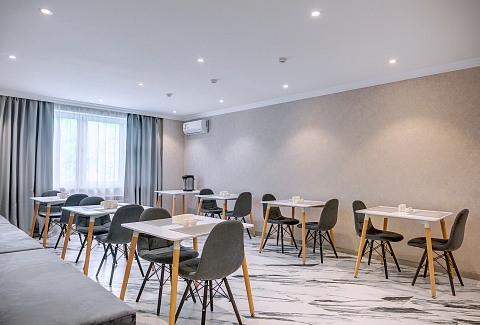 Поездом до Ленинградского вокзала, далее на метро от ст. «Комсомольская» до ст. «Белорусская», далее пересадка на Замоскворецкую линию, ехать от ст. «Белорусская» до ст. «Ховрино», далее на автобусе 368 (368в, 368у) от ост. «Метро Ховрино» до ост. «Совхозная улица», далее 900 м пешком до отеля.