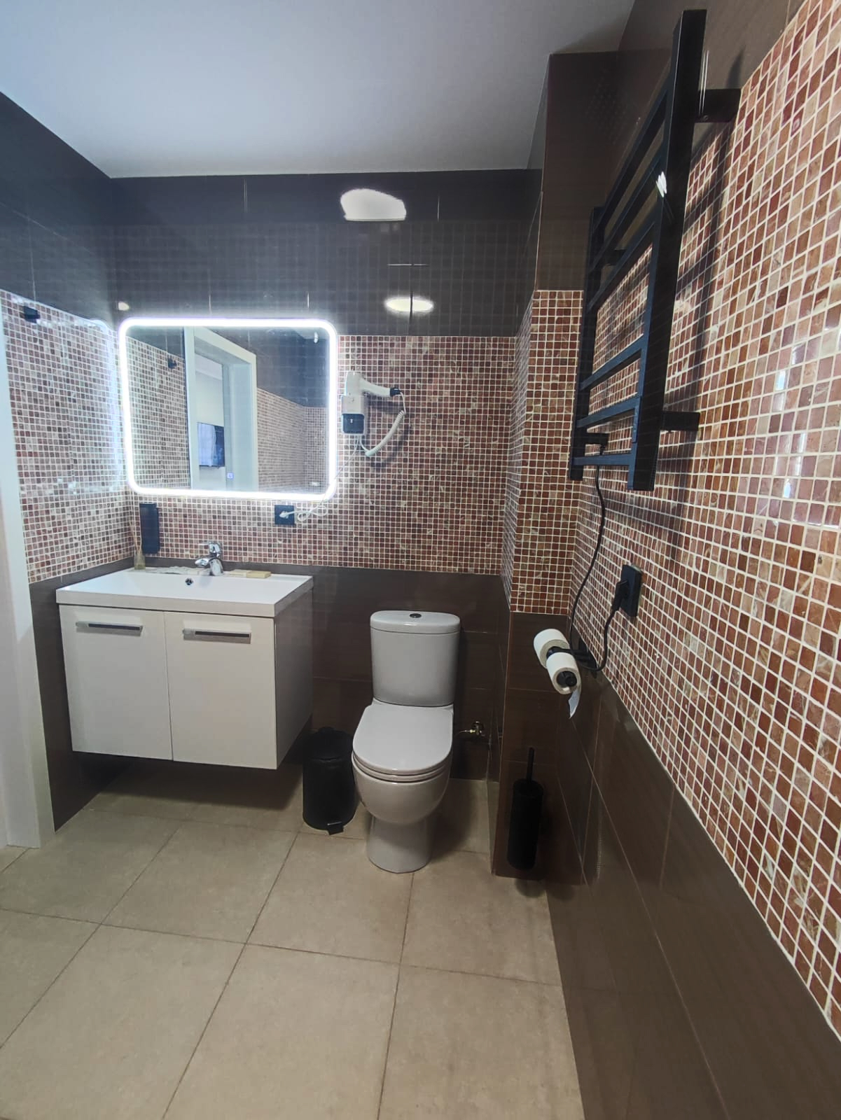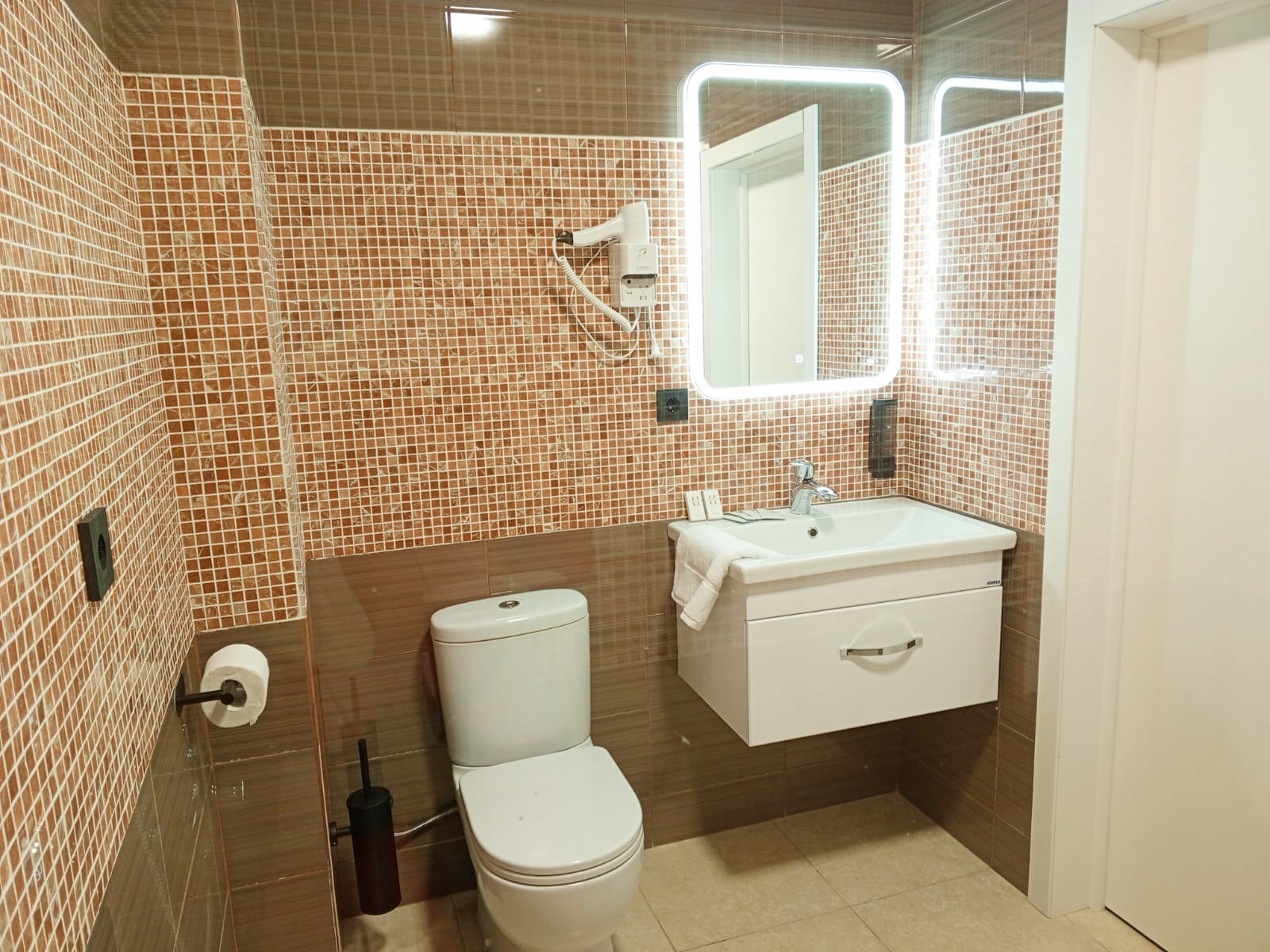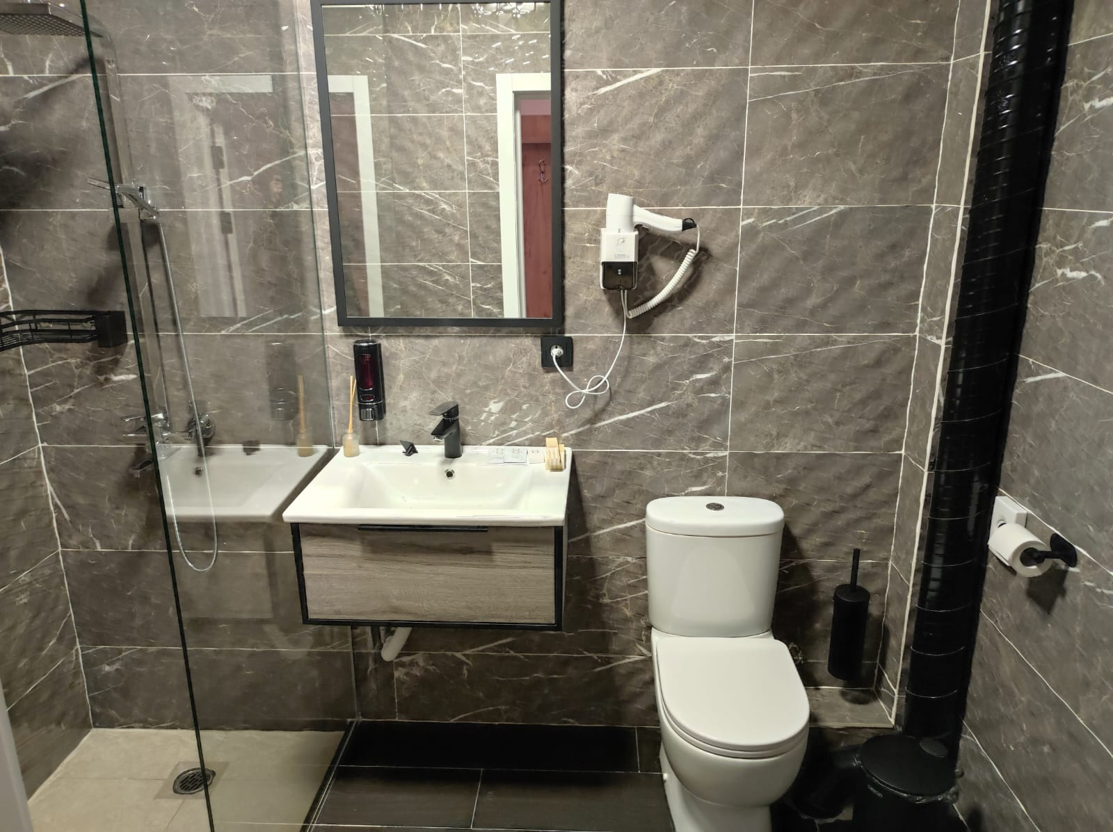 Санузел: с душем, туалетные принадлежности, фен