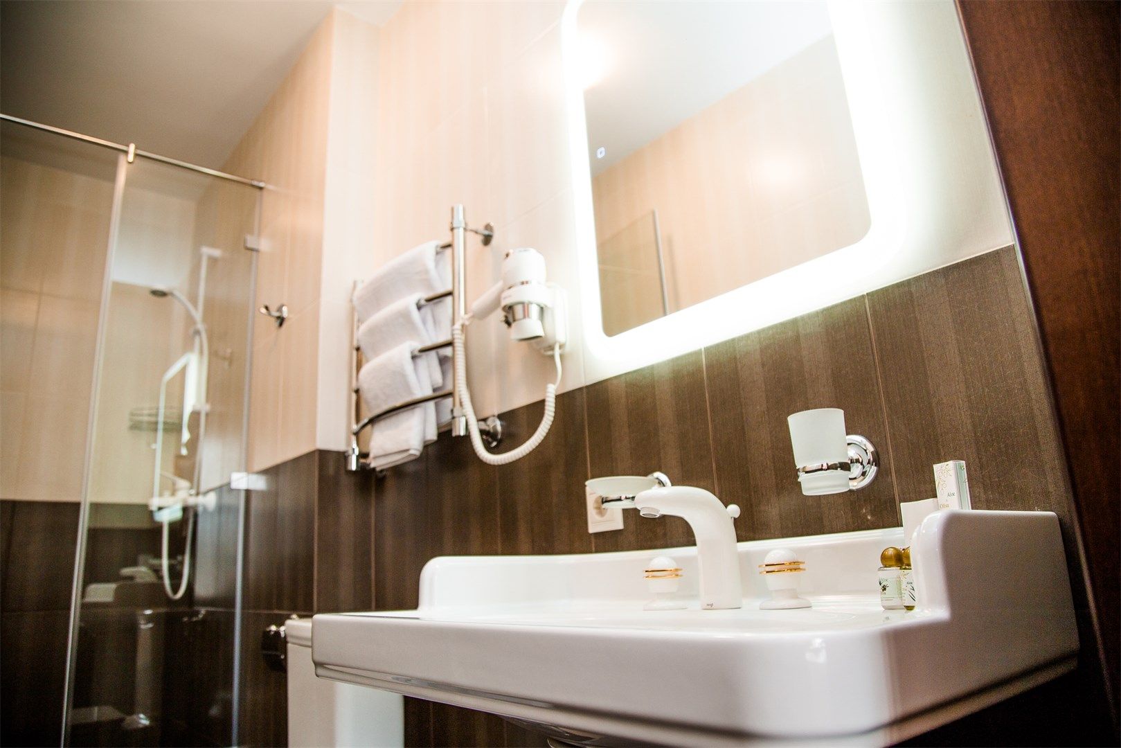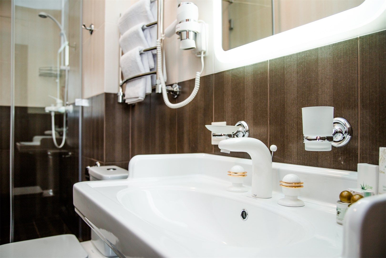 Санузел: с душевой кабиной, туалетные принадлежности, фен