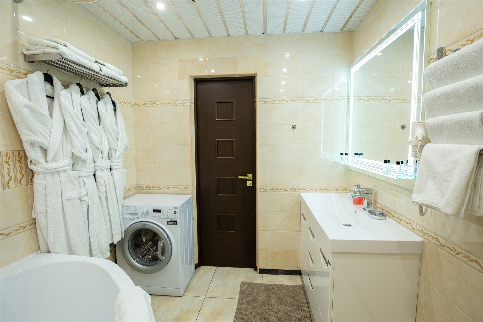 Санузел: с ванной/душем, тапочки, туалетные принадлежности, фен, халат