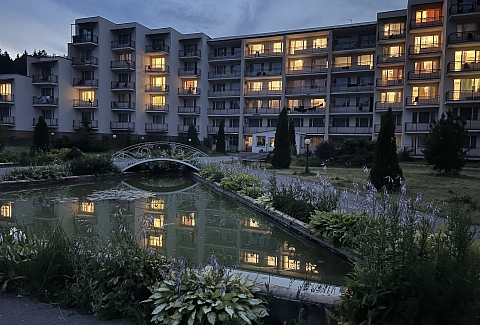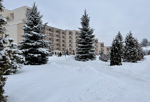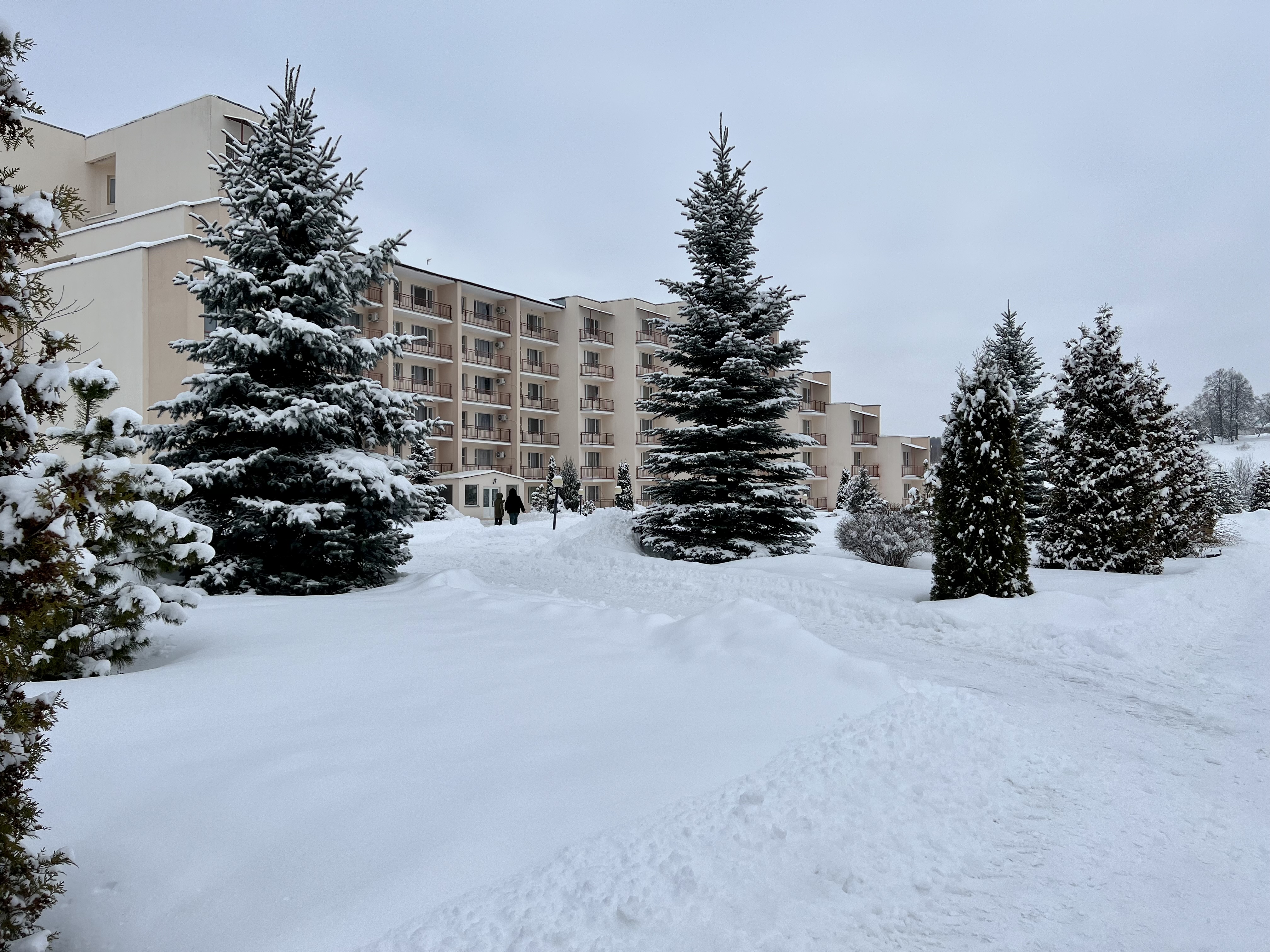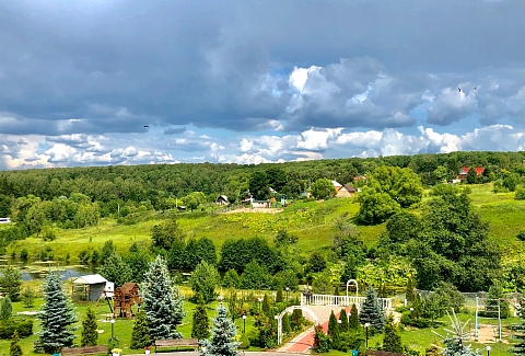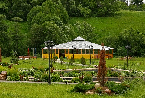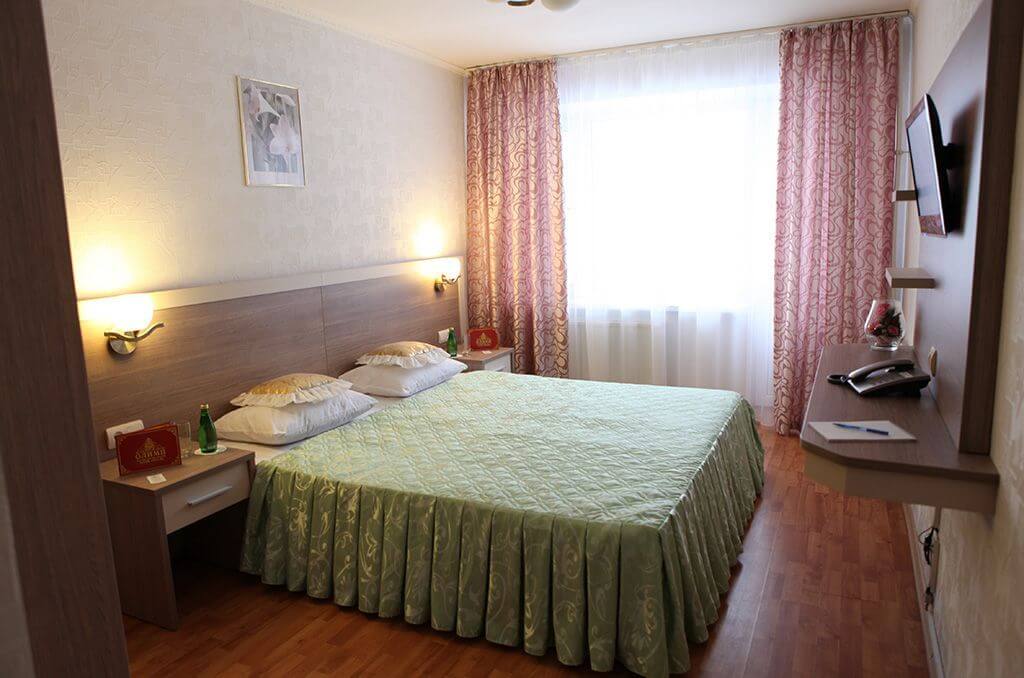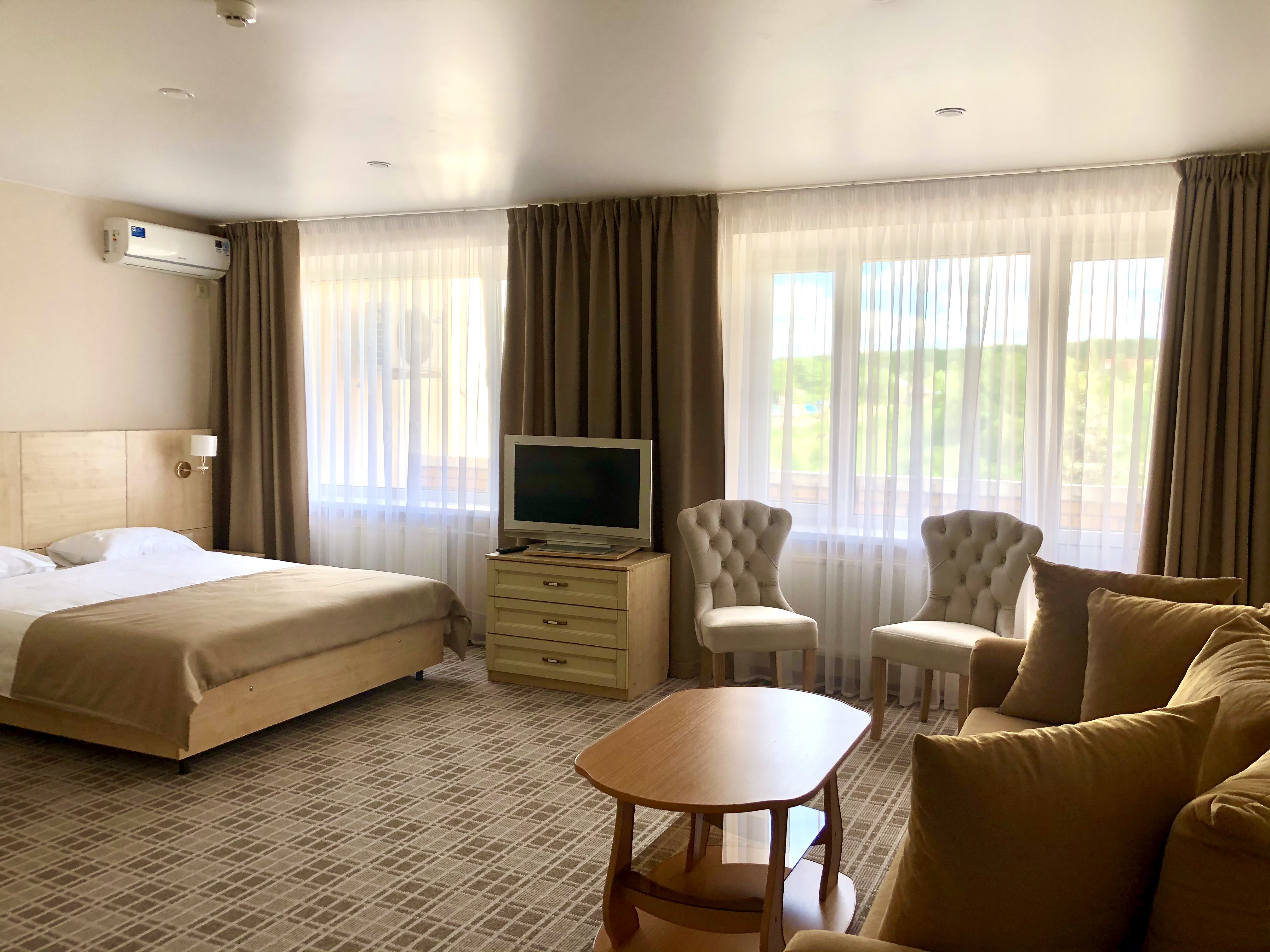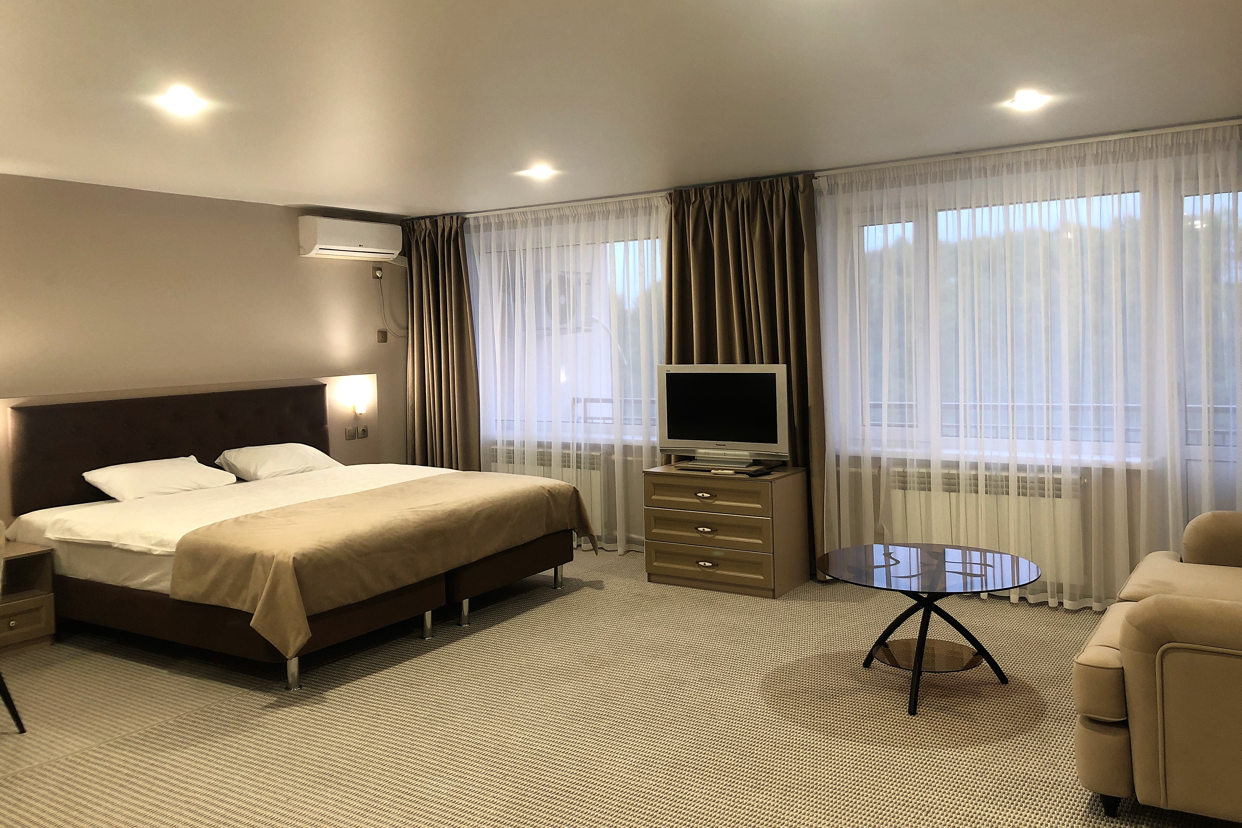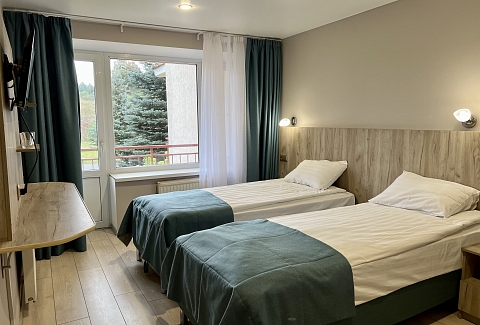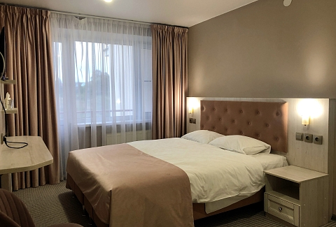 В целом, обширный номерной фонд отеля единовременно готов принять до 900 человек. Гостей ожидают комфортабельные двухместные номера категории Стандарт, Джуниор сьют и Люкс, оснащенные мебелью, санузлом с душем и косметическими принадлежностями. Отель предлагает на выбор двух-, трехразовое питание или только одни завтраки по системе «шведский стол», тип питания при небольшой численности гостей может быть изменен на сет-меню. Для отдыхающих на территории парк-отеля организован крытый бассейн 23х8, бильярд, караоке, настольный теннис, тир, аэрохоккей, кинозал, детский батут и лабиринт, детская игровая комната, сауны и открытые спортплощадки, оборудованные для игры в баскетбол, волейбол, бадминтон, футбол. Зимой – собственный горнолыжный комплекс с 2 горнолыжными трассами и тюбинговой горой, подъемники, освещение, прокат горных лыж, сноубордов и тюбингов, заливают каток, прокладывают лыжные трассы в лесу.В праздничные даты работает анимация. Для проведения различных мероприятий оборудованы конференц-залы, также в отеле есть просторные учебные аудитории. Отдыхающим доступны услуги прачечной, охраняемая парковка, беспроводной интернет и прокат спортивного инвентаря – велосипедов, коньков. Для детей парк-отель предлагает не менее развитую инфраструктуру. На территории обустроены площадки, есть детский городок, живой уголок, игровая комната с игрушками, в игровом зале батут и лабиринт. В праздничные дни проводятся детские дискотеки и работают аниматоры. Кроме того, предусмотрены прокат стульчиков, кроваток и детского спортивного оборудования – роликов, самокатов, велосипедов.