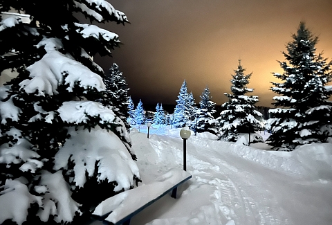 - каток, лыжные трассы в лесу, детские горки (в зимний период)