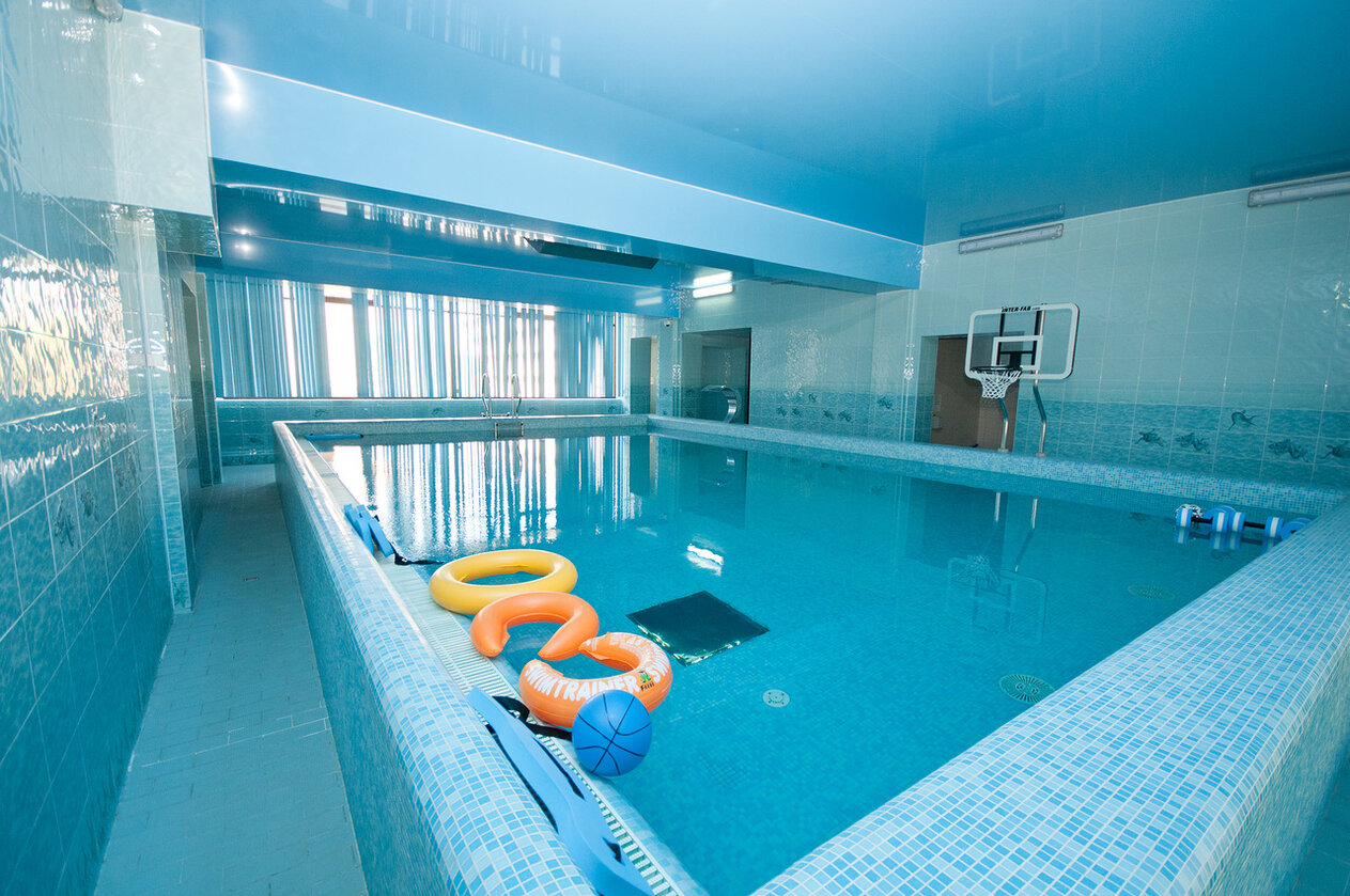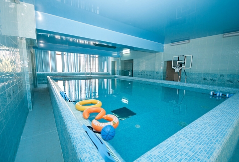 - детский бассейн расположен в здании главного корпуса; размер: 10*6 м.; вода не хлорированная; есть водопад; входит в стоимость